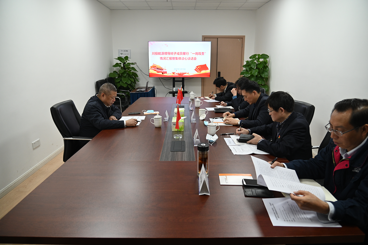 為深化全麵從嚴治黨,落實黨風廉政建設黨委主體責任和黨委書記第一責任人責任,切實履行“一崗雙責”,12月15日,川投能源黨委書記、副董事長、總經理楊洪聽取班子成員履行“一崗雙責”工作彙報並作點評,同時開展了對班子成員集體廉潔談心談話。