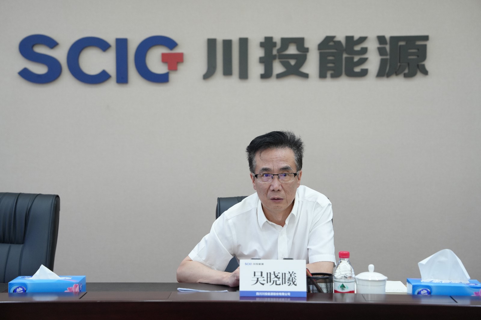 川投集團辦公室主任周家超,川投能源領導班子成員,安全環保部、人力資源部、項目投資部、辦公室、銀江水電站等相關人員參加會議。