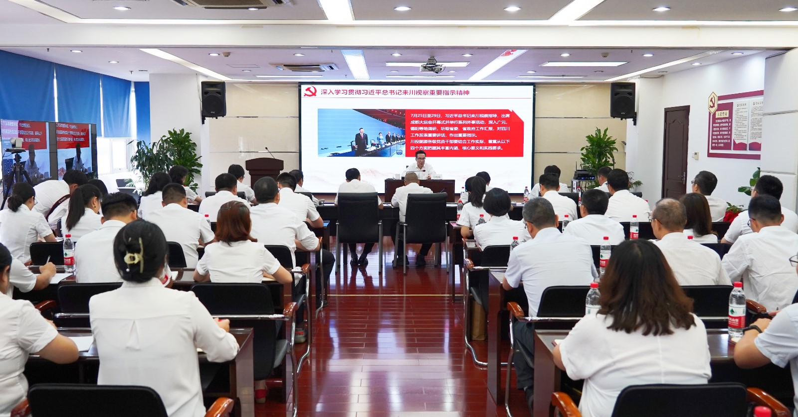 宣講報告會以“現場+視頻”形式召開,川投能源及所屬企業領導班子成員、中層以上管理人員、黨員代表共計170餘人參會。