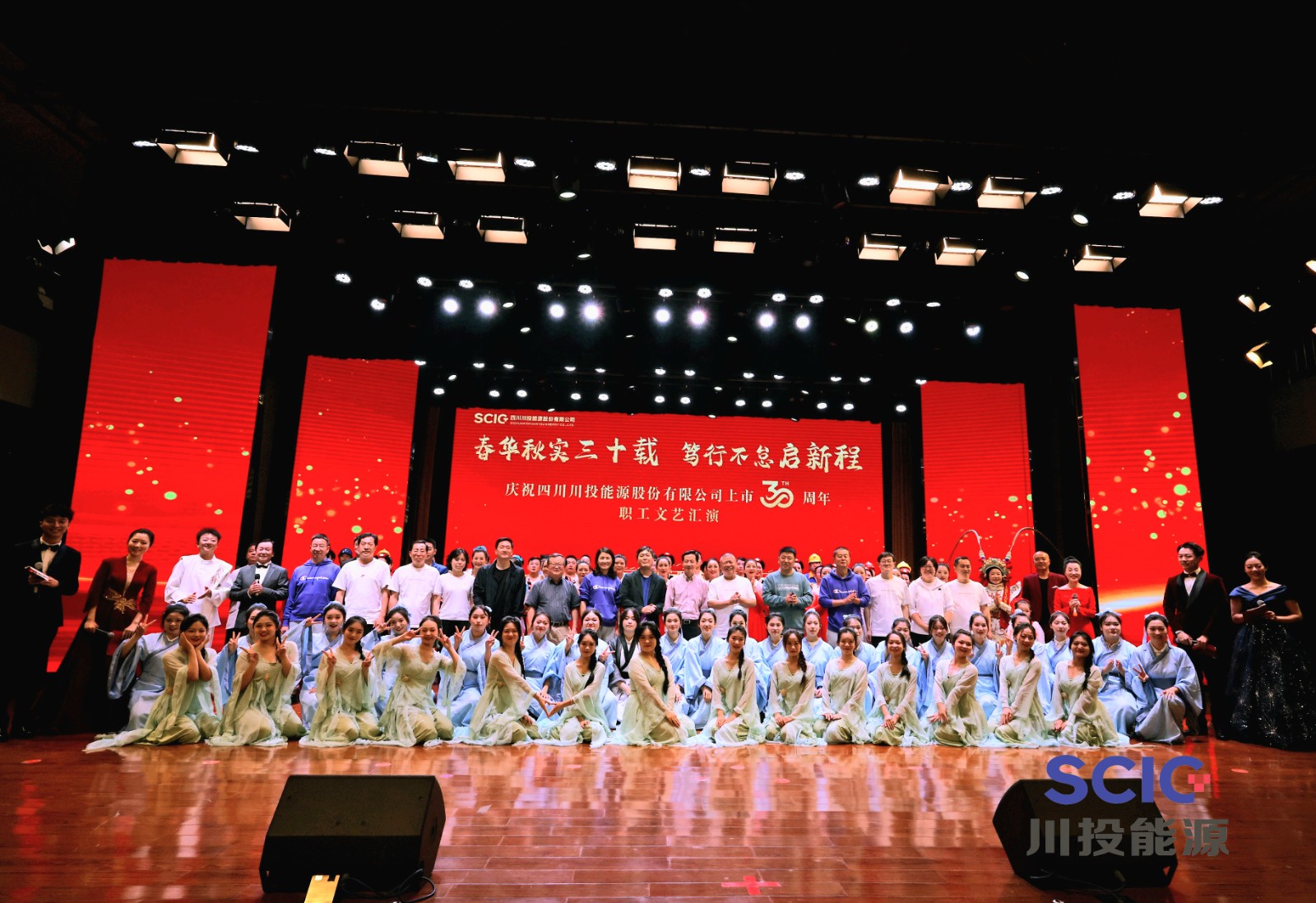 彙演現場,一曲激情澎湃的《鼓鳴盛世》揭開序幕,盡致展現國家繁榮富強,人民奮發向上的美好圖景。《向著第二個百年奮鬥目標,前進!》,讓大家在快板聲中沐浴黨的二十大精神光輝,激勵廣大職工牢記總書記殷殷囑托,砥礪奮進新時代新征程。詩歌朗誦《春華秋實三十載 篤行不怠啟新程》,全景式回顧了川投能源上市30年來,篳路藍縷、奮發圖強,成長為四川省參控股裝機規模最大的能源上市公司的壯闊曆程。《經典古文誦讀》、川劇《川劇變臉》、歌曲《不忘初心》《新時代進行曲》等節目輪番上場,舞蹈《川投水電人》《燈》《小城謠》《心彝銀江》精彩不斷,現場氣氛高潮迭起,贏得觀眾陣陣掌聲。最後,隨著《歌唱祖國》旋律的響起,在全場大合唱中,演出圓滿落幕。