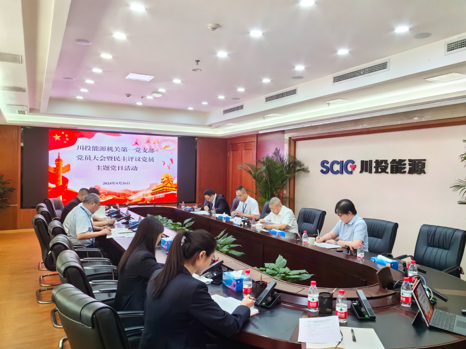2024年4月26日下午,川投能源機關第一黨支部召開黨員大會,集中學習習近平總書記近期重要講話精神,增補選舉支部委員會委員,開展2023年度民主評議黨員等工作。根據黨員領導幹部雙重組織生活製度要求,川投能源黨委書記、副董事長、總經理楊洪,董事會秘書魯晉川以普通黨員身份參加會議,支部全體在家黨員(含預備黨員)共11人參會。