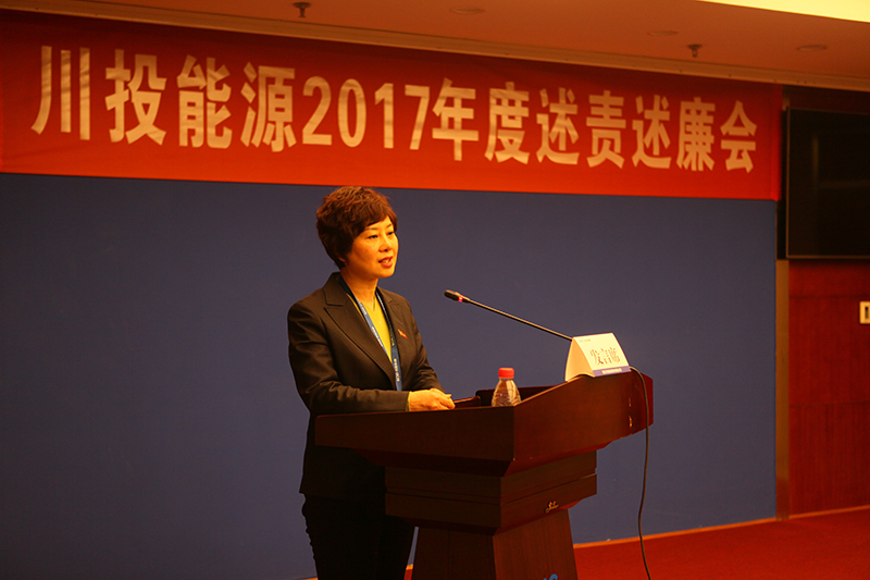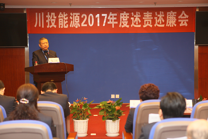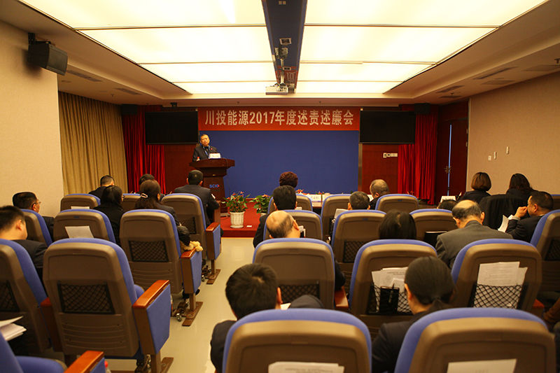為深入學習貫徹黨的十九大精神,貫徹落實全麵從嚴治黨要求,按照省紀委和集團紀委係統化防治腐敗的工作部署,川投能源紀委於2月11日上午召開了2017年度述責述廉會議。集團公司紀委辦主任王軍親臨現場指導,公司領導班子成員、本部中層副職以上人員、部分黨員代表和職工代表、所屬控股公司主要負責同誌及黨群、紀檢、人事部門負責人共計40餘人參加了會議。會議由紀委書記冉蘭平主持。