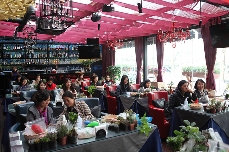 隨後,園藝老師向大家介紹了多肉植物的類別品種、形態特征、栽培方法以及微景觀的藝術設計與賞鑒。在體驗環節,麵對一棵棵萌態可掬的“小鮮肉”,栩(xu)栩(xu)如(ru)生(sheng)的(de)小(xiao)擺(bai)飾(shi),精(jing)美(mei)別(bie)致(zhi)的(de)花(hua)盆(pen),大(da)家(jia)興(xing)奮(fen)不(bu)已(yi),躍(yue)躍(yue)欲(yu)試(shi)。工(gong)作(zuo)中(zhong)幹(gan)練(lian)的(de)女(nv)漢(han)子(zi)變(bian)成(cheng)了(le)心(xin)靈(ling)手(shou)巧(qiao)的(de)園(yuan)藝(yi)師(shi),她(ta)們(men)小(xiao)心(xin)翼(yi)翼(yi)地(di)將(jiang)嬌(jiao)柔(rou)的(de)植(zhi)物(wu)安(an)入(ru)花(hua)內(nei),鋪(pu)上(shang)彩(cai)色(se)石(shi)子(zi),放(fang)上(shang)小(xiao)飾(shi)品(pin),每(mei)個(ge)人(ren)都(dou)發(fa)揮(hui)著(zhe)豐(feng)富(fu)的(de)想(xiang)象(xiang)和(he)新(xin)奇(qi)的(de)創(chuang)意(yi),一(yi)座(zuo)座(zuo)“迷你小花園”各(ge)具(ju)特(te)色(se),極(ji)富(fu)設(she)計(ji)感(gan)。大(da)家(jia)紛(fen)紛(fen)拿(na)出(chu)手(shou)機(ji)拍(pai)下(xia)作(zuo)品(pin),記(ji)錄(lu)下(xia)活(huo)動(dong)的(de)美(mei)好(hao)瞬(shun)間(jian)。喜(xi)歡(huan)養(yang)花(hua)的(de)姐(jie)妹(mei)們(men)還(hai)向(xiang)老(lao)師(shi)請(qing)教(jiao)花(hua)卉(hui)種(zhong)植(zhi)和(he)養(yang)護(hu)知(zhi)識(shi),每(mei)個(ge)人(ren)的(de)臉(lian)上(shang)都(dou)洋(yang)溢(yi)著(zhe)輕(qing)鬆(song)和(he)愉(yu)悅(yue)。