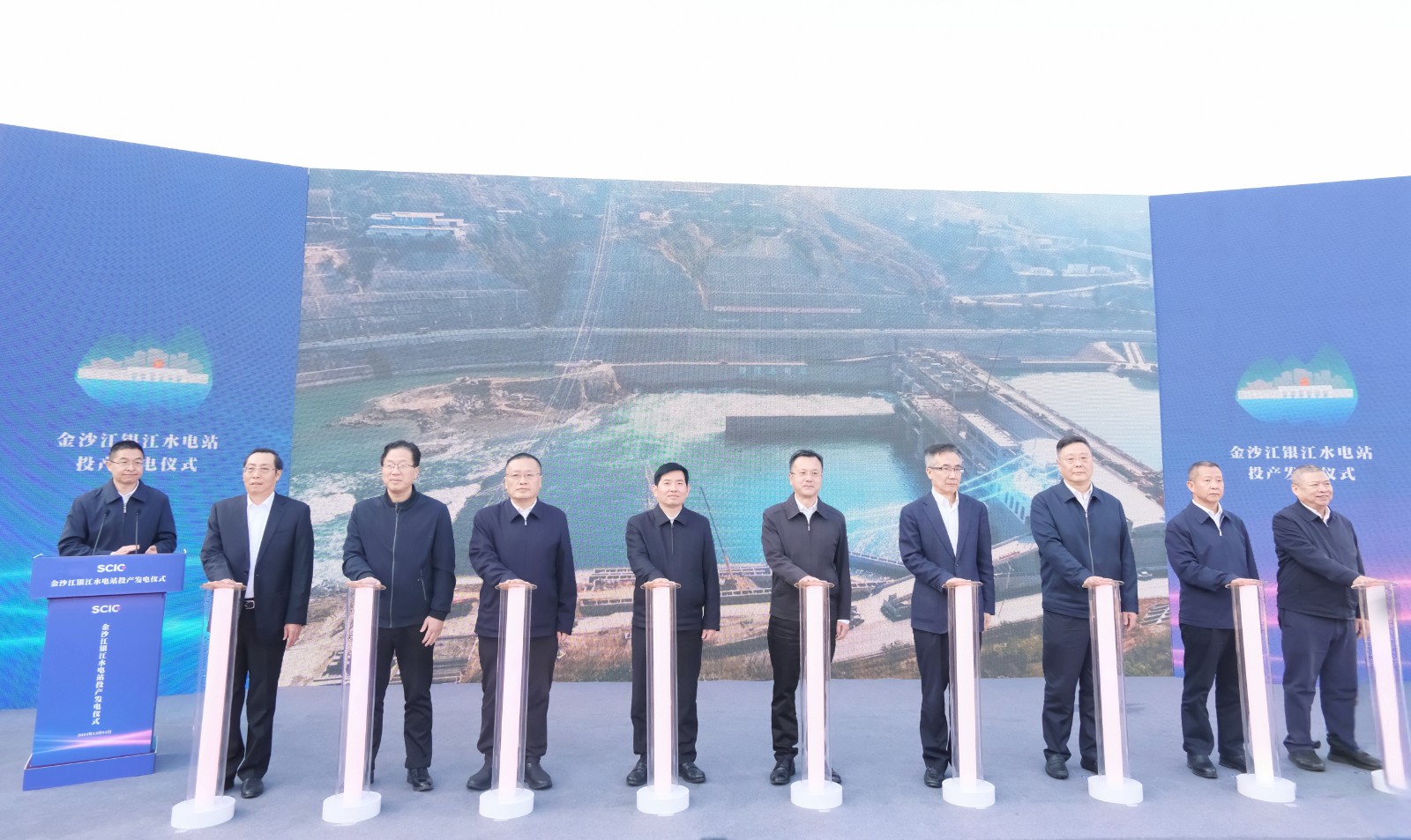 上午9時許,隨著儀式現場下達首台機組開機發電指令,吳群剛、吳曉曦、範繼躍、李文誌、林建國、李仁傑等領導按下啟動柱,共同啟動金沙江銀江水電站投產發電,標誌著該水電站提前一年實現投產發電目標。