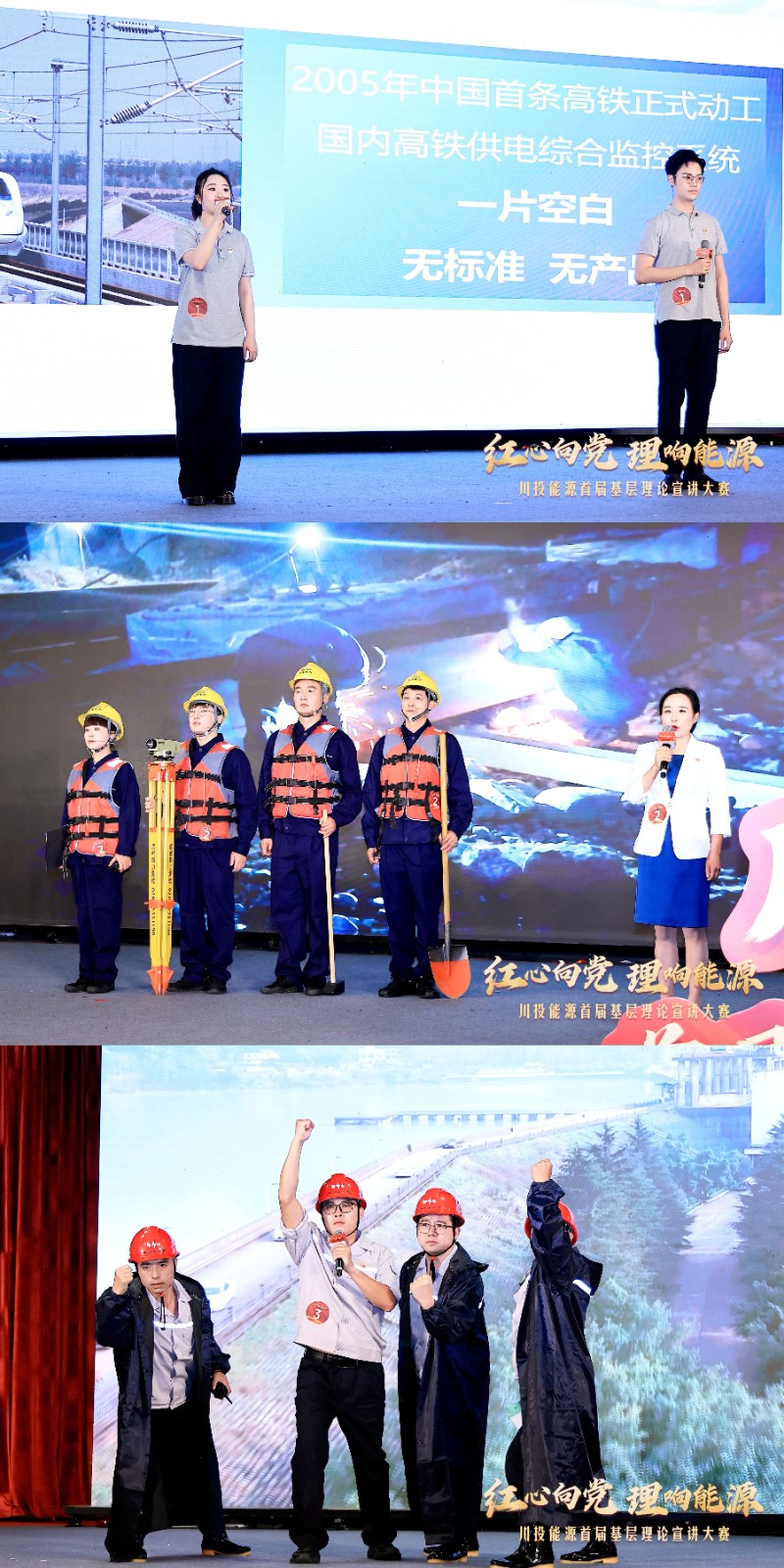 決賽現場,來自川投能源所屬公司的6支優勝隊伍逐一登台競演,內容聚焦項目建設、科技創新、保電保供、防洪度汛、鄉村振興等不同領域,用鮮活的事例、生動的語言、真摯的情感,以“小話題”闡述“大主題”,把黨的創新理論轉化為幹部職工通俗易懂、易於接受的家常話,贏得現場陣陣掌聲。