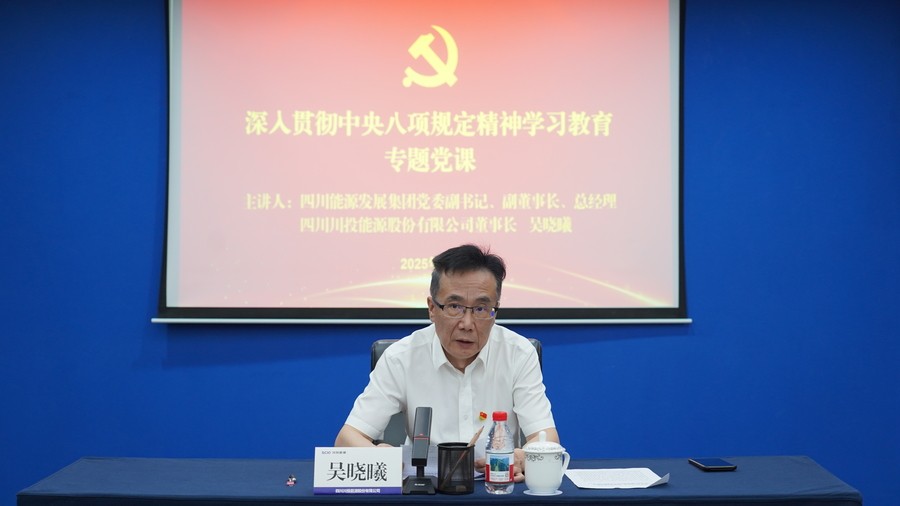 7月16日,四川能源發展集團黨委副書記、副董事長、總zong經jing理li吳wu曉xiao曦xi赴fu川chuan投tou能neng源yuan講jiang授shou深shen入ru貫guan徹che中zhong央yang八ba項xiang規gui定ding精jing神shen學xue習xi教jiao育yu專zhuan題ti黨dang課ke,圍wei繞rao加jia強qiang黨dang的de作zuo風feng建jian設she特te別bie是shi深shen入ru貫guan徹che中zhong央yang八ba項xiang規gui定ding精jing神shen,以yi“深學篤行強作風 踔厲奮發新征程 以過硬作風為能源集團改革發展保駕護航”為題,與公司黨員交流認識體會,川投能源黨委書記、副董事長、總經理楊洪主持。