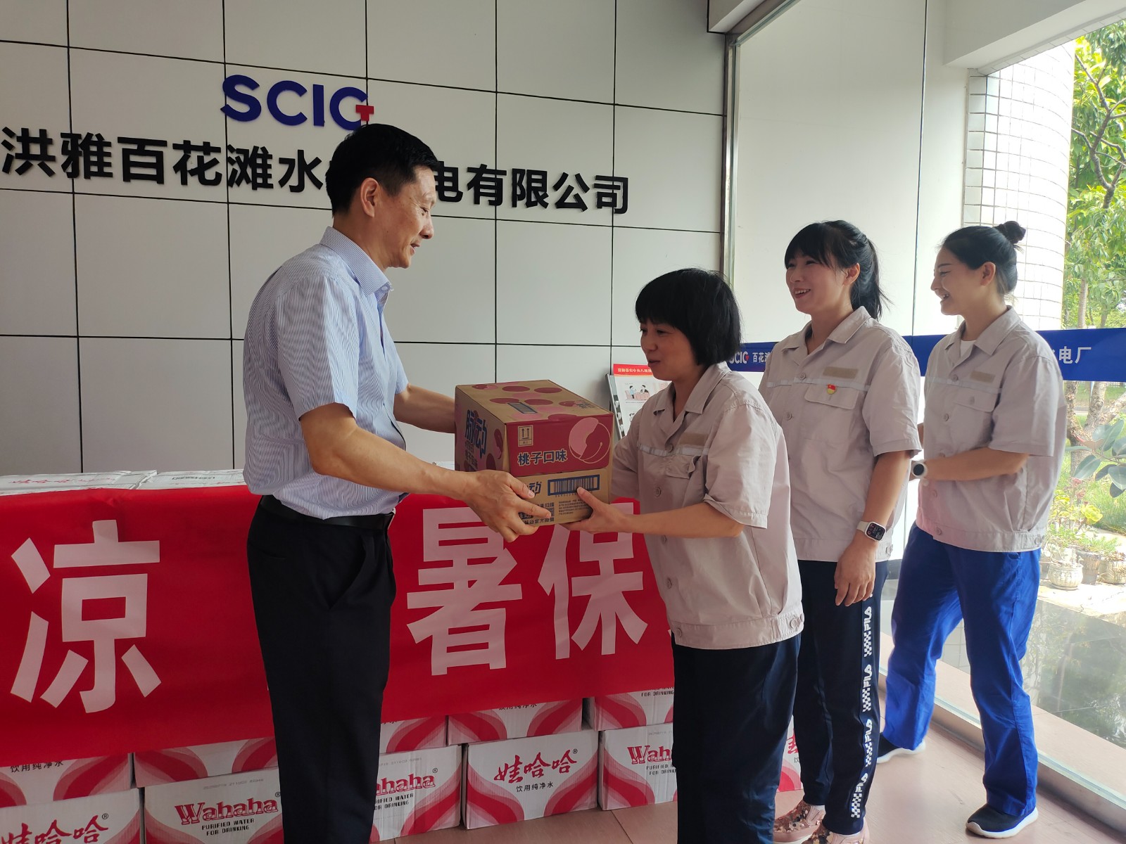 7月22日,川投能源黨委副書記、工會主席冉蘭平率隊赴槽漁灘公司、百花灘電廠,圍繞防災減災、信訪維穩、宣傳思想文化等工作開展調研指導,並深入一線開展“送清涼”慰問活動,為高溫下堅守崗位的職工送去關懷與鼓勵。川投電力黨委書記、董事長楊濤陪同調研。