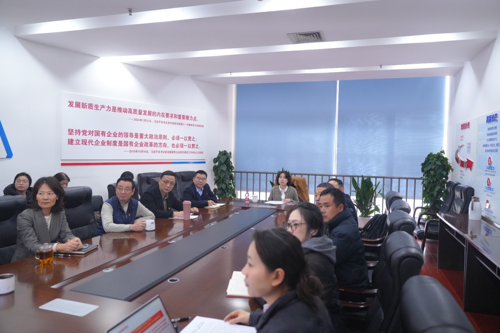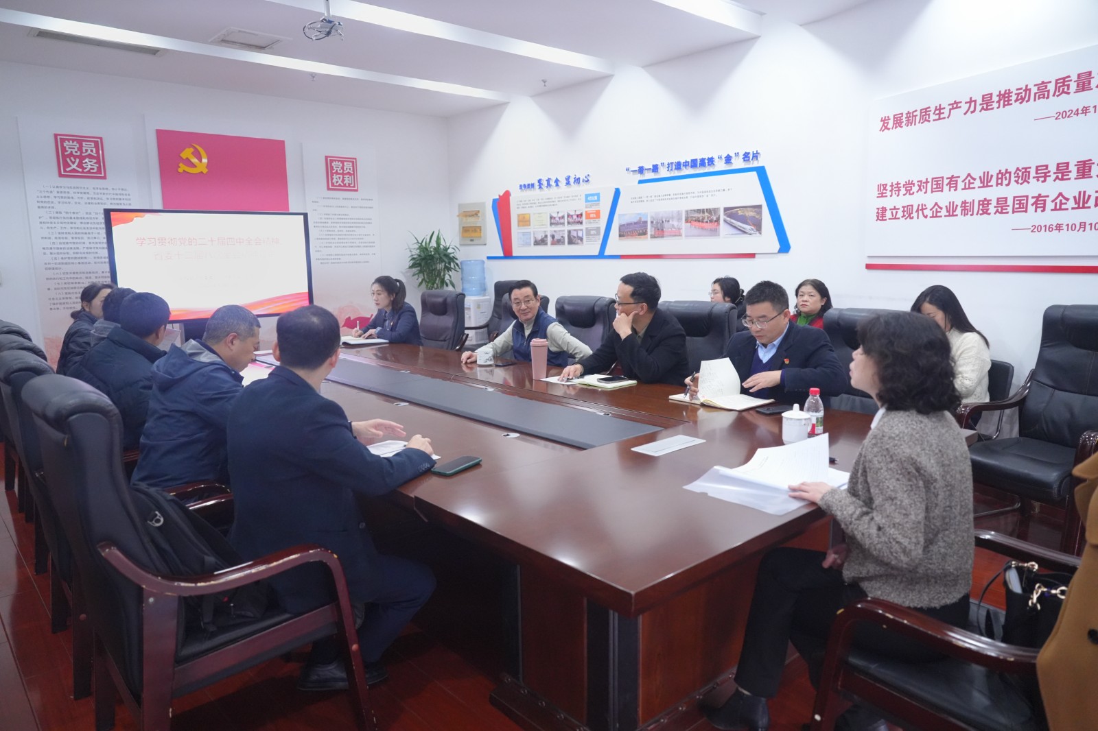 12月12日下午,川投能源黨委委員、財務總監劉好赴交大光芒專題宣講黨的二十屆四中全會及省委十二屆八次全會精神,交大光芒公司黨總支書記、常務副總經理王濤主持會議。