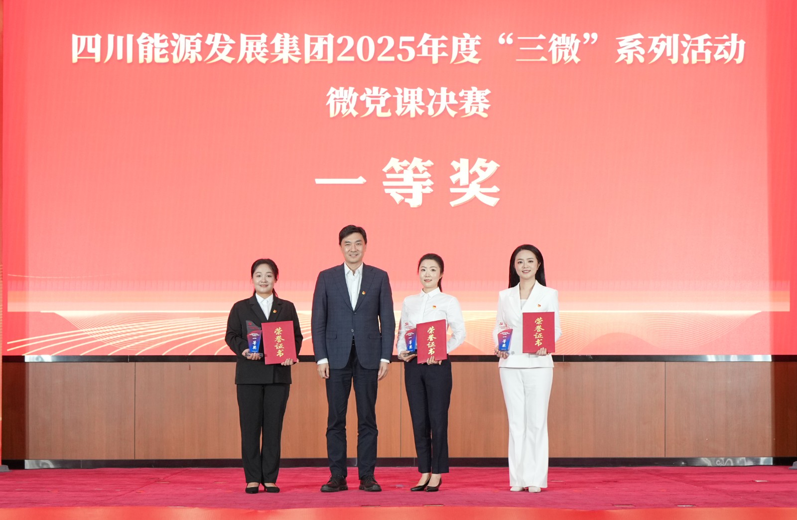 1月22日,四川能源發展集團“黨建引領聚合力・改革重組啟新程”2025年度“三微”係列活動微黨課決賽,在集團總部圓滿落幕。川投能源基層理論宣講“睿聲工作室”骨幹成員,川投電力公司黨群工作部趙夢婷講授的微黨課《追光之路》,憑借深厚的情感、生動的敘事和鮮明的主題,以全場最高分斬獲一等獎。此外,川投能源還包攬了本次微黨課決賽的優秀組織獎。集團公司黨委副書記、副董事長、總經理鄧超為獲得一等獎的主講人頒獎,川投能源黨委書記、董事長劉勝金,黨委副書記、職工董事、工會主席冉蘭平現場觀看微黨課決賽。