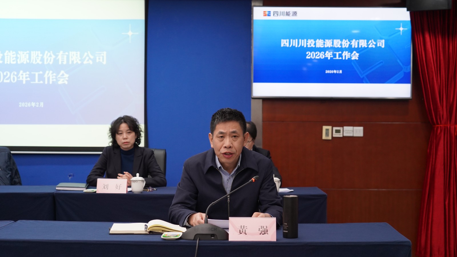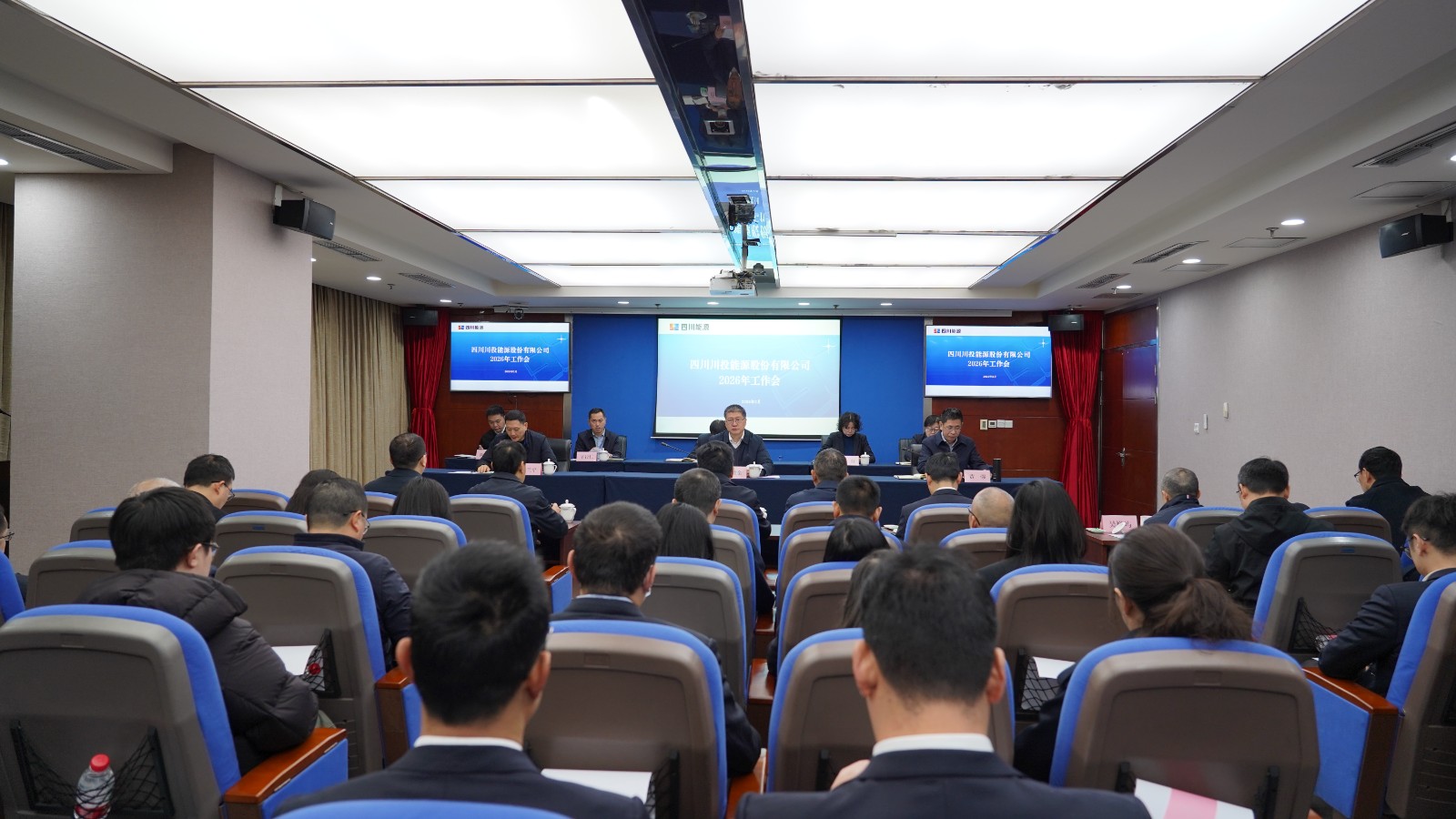 2月9日上午,川投能源召開2026年工作會,深入學習貫徹黨的二十屆四中全會精神、省委十二屆八次全會精神,按照四川能源發展集團年度工作會安排,總結公司2025年及“十四五”發展工作,對正對標服務中心大局、聚力聚焦主責主業、深度深化融合發展等要求,研究“十五五”工作思路,部署2026年重點任務,以新姿態、新舉措奮力推動川投能源高質量發展再上新台階。公司黨委書記、董事長劉勝金出席會議並講話,黨委副書記、副董事長、總經理黃強作年度工作報告,黨委副書記、職工董事、工會主席冉蘭平主持會議。