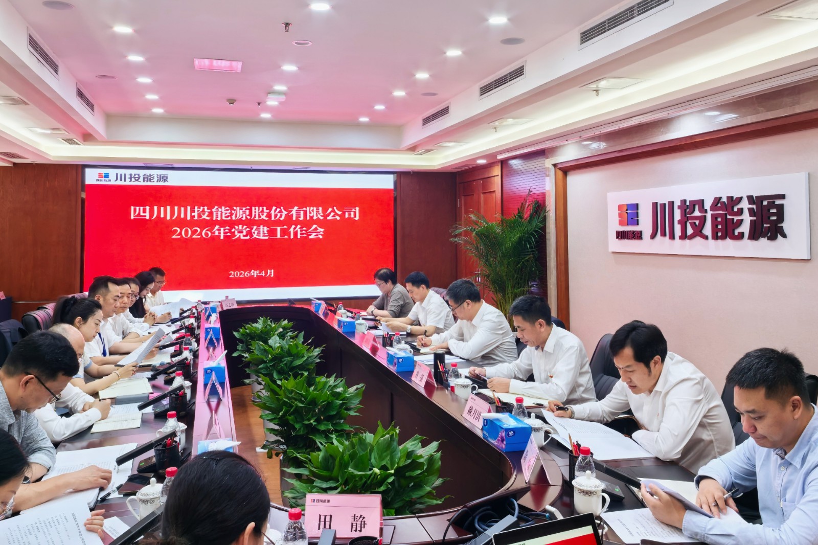 4月20日,川投能源召開2026年黨建工作會,深入學習習近平總書記關於黨的建設重要思想,傳達學習全國、全省組織部長會議精神和集團公司2026年黨建工作會精神,全麵總結2025年黨建工作成效,係統部署2026年重點任務。公司黨委書記、董事長劉勝金出席會議並講話,黨委副書記、副董事長、總經理黃強主持會議,黨委副書記、職工董事、工會主席冉蘭平作黨建工作報告。