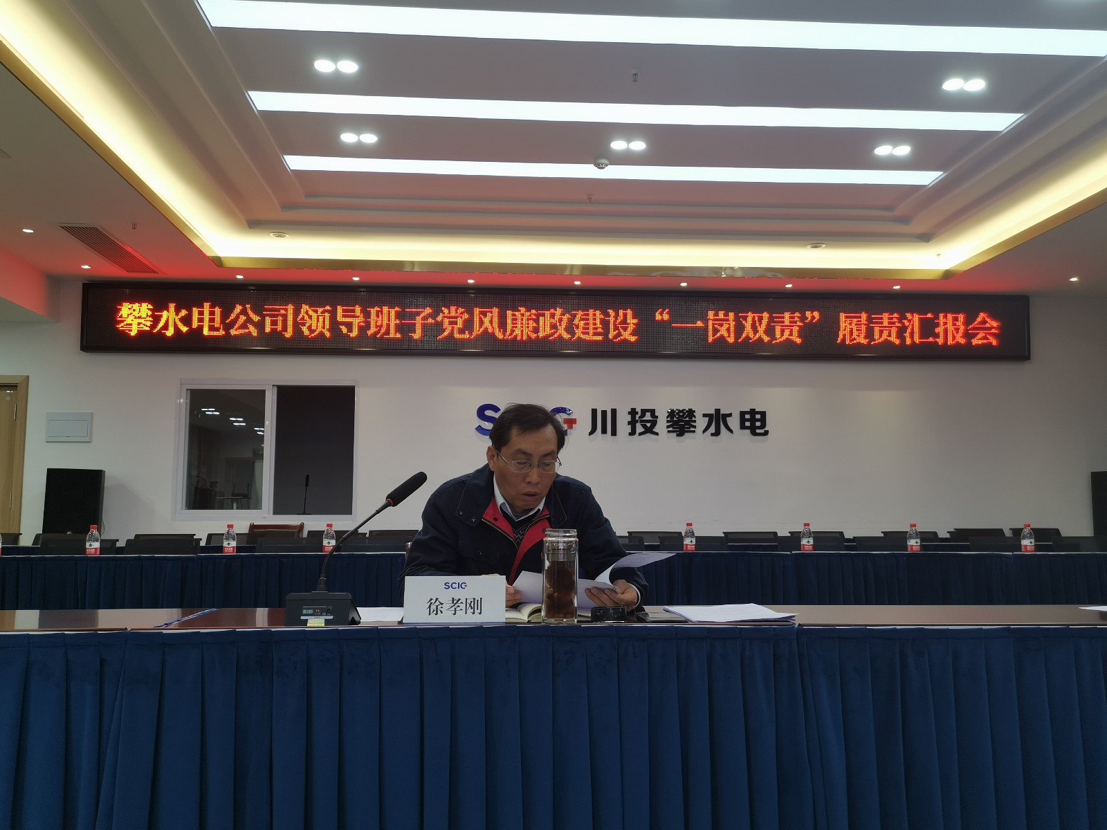 為貫徹落實全麵從嚴治黨總體要求,進一步強化公司黨總支全麵從嚴治黨主體責任考核工作,根據中共中央辦公廳《黨委(黨組)落實全麵從嚴治黨主體責任規定》以及川投能源黨委《落實全麵從嚴治黨主體責任考核實施辦法》等相關規定要求。2021年12月13日,川投能源副總經理、攀水電公司黨總支書記、董事長徐孝剛組織召開專題會議,聽取4名領導班子成員(黨總支委員)落實黨風廉政建設“一崗雙責”情況彙報。
