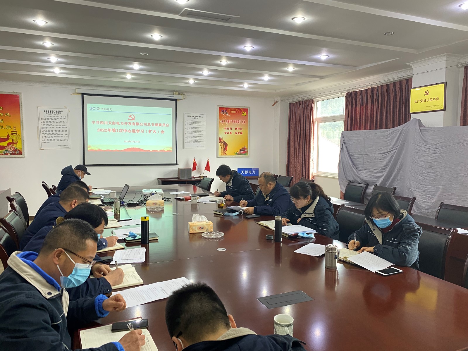 1月24日上午,天彭電力黨總支在公司二樓會議室召開2022年第1次中心組學習(擴大)會,公司領導、黨員幹部、關鍵崗位人員參加會議,會議由公司黨總支書記、董事長、總經理陳忠主持。
