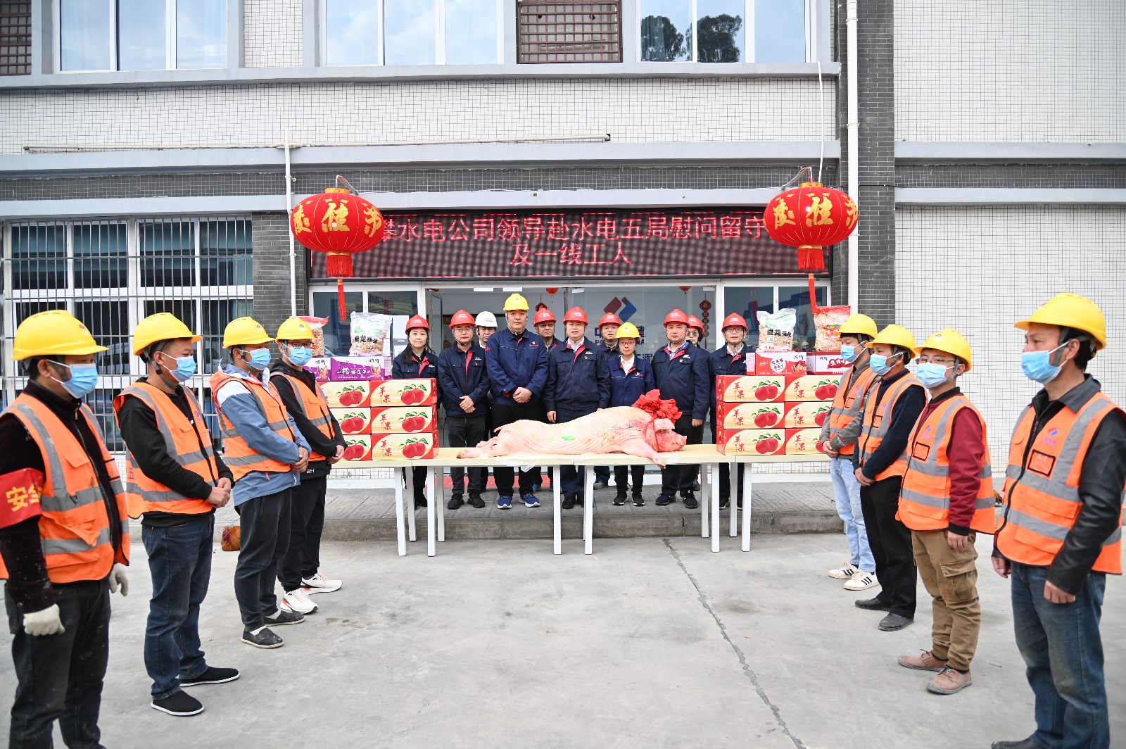金牛昂首高歌去,玉虎迎春斂福來。2022年1月31日除夕上午,帶著新春的美好祝福與親切關懷,受川投能源副總經理、攀水電公司黨總支書記、董事長徐孝剛委托,公司黨總支委員、總經理吳巍嶼,黨總支委員、紀檢小組長、總經理助理楊銳帶領公司值班人員、誌願者服務隊十餘人來到水電五局項目部、水電七局項目部、貴陽院監理部等參建單位,看望慰問春節期間依然堅守在銀江水電站工程建設一線的參建單位員工。
