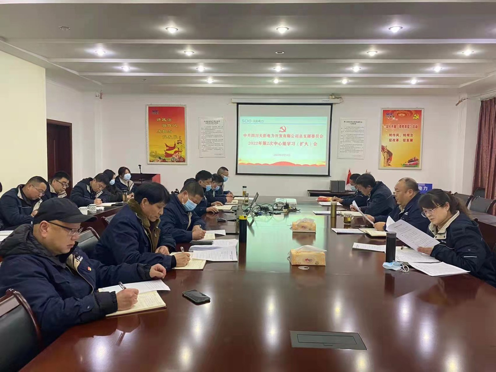 2月14日下午,天彭電力黨總支在公司二樓會議室召開2022年第2次中心組學習(擴大)會,專題學習研討2021年度基層黨組織組織生活會學習內容,為開好組織生活會、做好民主評議黨員工作打牢思想基礎。公司領導、黨員幹部、關鍵崗位人員參加會議,會議由公司黨總支書記、董事長、總經理陳忠主持。