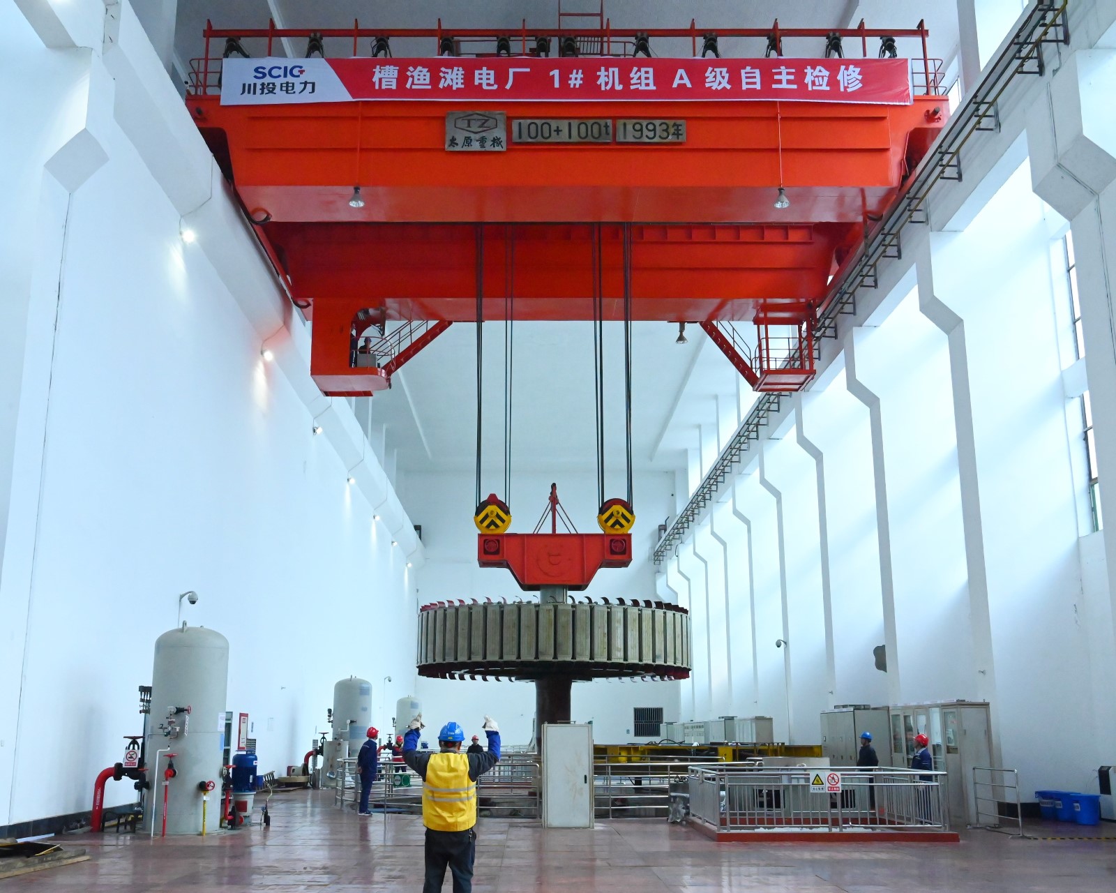 槽漁灘電廠按計劃開展了1#機組大修,2021年12月1日開工,2002年2月15日機組成功並網發電,檢修工期僅僅用了65天。參檢人員提前編製發電機轉子、轉輪吊裝方案,明確人員職責,檢查並調校行車、吊具,規劃行徑路線,在檢修團隊通力協作下,均一次性安全順利吊出。2#、3#機組C修以及1#主變小修、2#主變大修也於4月5日全部完工;目前正持續推進線路保護改造工作。