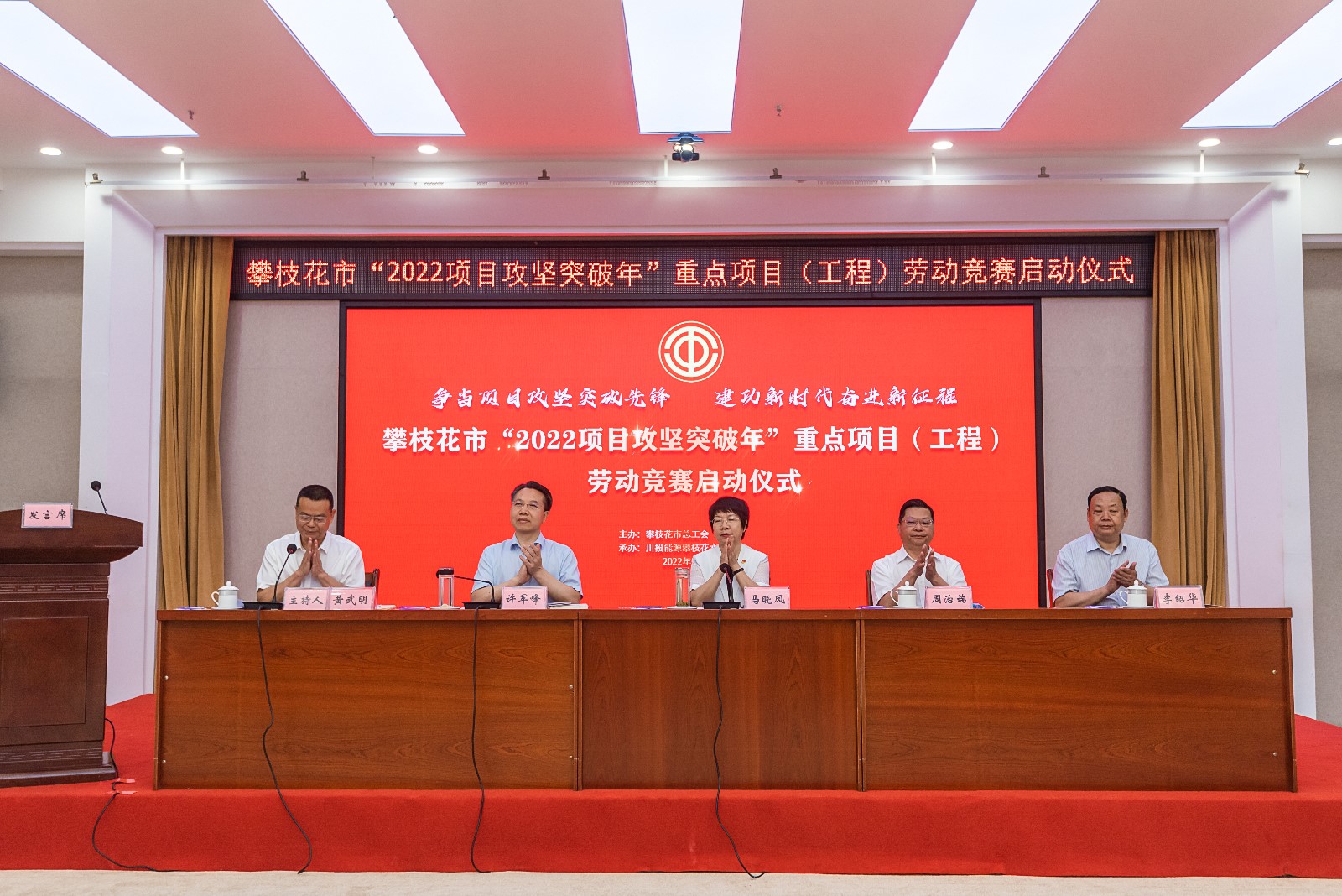 5月11日,由攀枝花市總工會主辦、攀水電公司承辦的攀枝花市“2022項目攻堅突破年”重點項目(工程)勞動競賽啟動儀式在攀枝花市會展中心舉行,攀枝花市委常委、統戰部部長、市總工會主席馬曉鳳出席啟動儀式並宣布勞動競賽正式啟動。市人大常委會副主任周治端、副市長許軍峰、市政協副主席李紹華出席啟動儀式,川投能源副總經理、攀水電公司黨總支書記、董事長徐孝剛代表全市50家重點項目(工程)發出倡議。