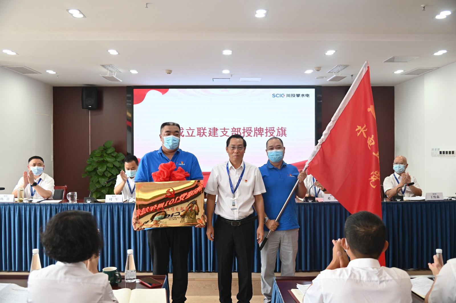 大會在莊嚴的國歌聲中拉開帷幕,攀新能源公司總經理、攀水電公司副總經理周軍和財務總監王俊森分別傳達了川投集團、川投能源“七一”表彰大會精神。隨著徐孝剛為新成立聯建支部水電五局銀江項目部黨支部進行了授牌和授旗;表彰了2021年度“兩優一先”先進集體和個人,為先進集體和個人頒發了獎牌、證書,受表彰的先進集體和個人代表分別作了交流發言;黨群工作部田德萍代表新入職黨員作了表態發言,她談到:有you幸xing加jia入ru川chuan投tou大da家jia庭ting,成cheng為wei攀pan水shui電dian公gong司si青qing年nian黨dang員yuan隊dui伍wu的de一yi員yuan,將jiang充chong分fen發fa揮hui攀pan枝zhi花hua三san線xian建jian設she精jing神shen,發fa揚yang攀pan水shui電dian銀yin江jiang精jing神shen,與yu其qi他ta新xin入ru職zhi員yuan工gong一yi道dao投tou身shen於yu銀yin江jiang水shui電dian站zhan建jian設she和he公gong司si高gao質zhi量liang發fa展zhan中zhong去qu。