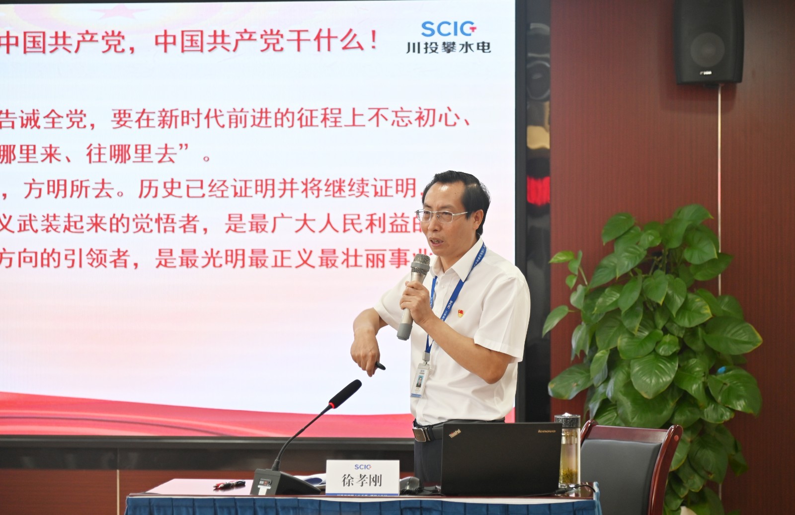 徐孝剛以《牢記習近平總書記囑托,落實省第十二次黨代會精神,奮力完成重點項目攻堅向黨的二十大獻禮》為wei題ti,對dui習xi近jin平ping總zong書shu記ji來lai川chuan視shi察cha重zhong要yao指zhi示shi精jing神shen和he省sheng第di十shi二er次ci黨dang代dai會hui精jing神shen進jin行xing了le宣xuan講jiang,並bing結jie合he公gong司si實shi際ji,如ru何he深shen入ru貫guan徹che落luo實shi,為wei公gong司si黨dang員yuan上shang了le一yi堂tang鼓gu舞wu人ren心xin、內涵豐富的黨課。