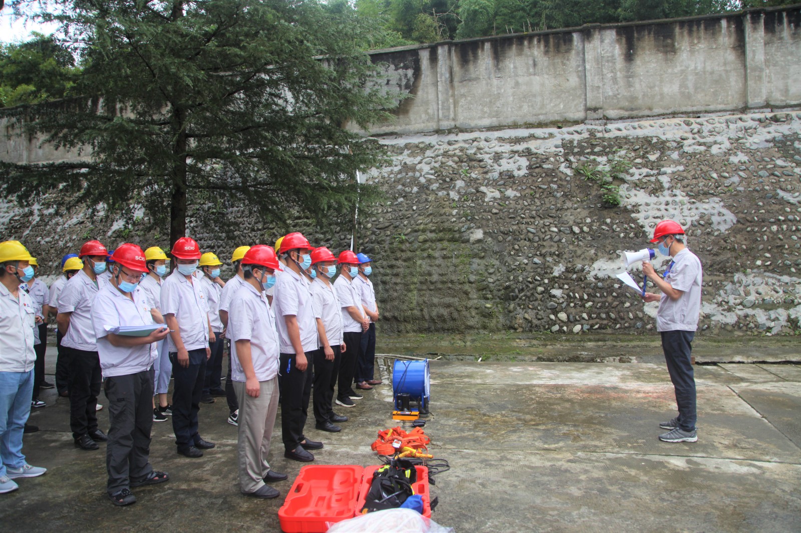 為汲取今年以來全省先後發生7qiyouxiankongjianzuoyeshengchananquanshigudeshenkejiaoxun,yangeguancheluoshishenganweihuiguanyuzuohaoyouxiankongjianzuoyeanquanfangfangongzuodexiangguanyaoqiubushu,zhualaozhuashigeguanjianhuanjieheanquanfangfancuoshi,8月29日,天彭電力結合公司實際組織開展了年度有限空間作業中毒窒息事故現場處置演練,公司領導、各部門、車間相關人員參加演練。