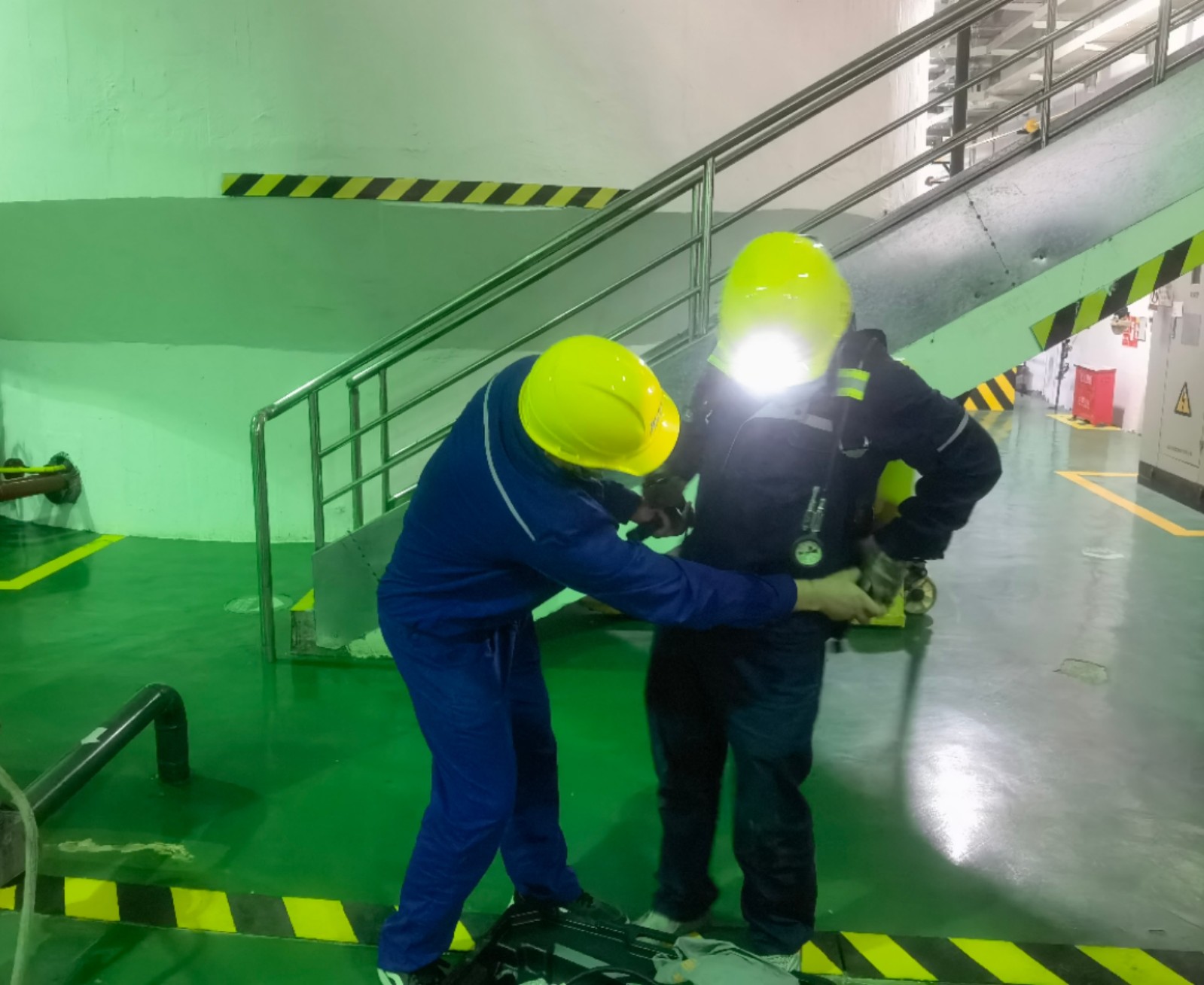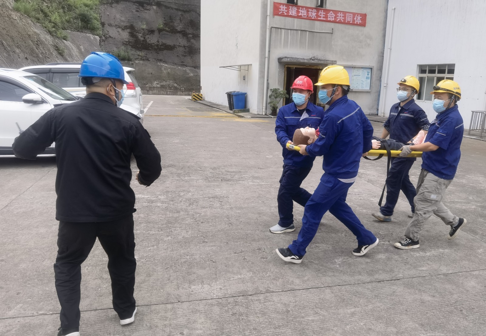 隨著總指揮一聲令下,演練正式開始。“一名員工突然暈倒,情況不明”,接jie到dao指zhi令ling後hou,總zong指zhi揮hui立li即ji啟qi動dong有you限xian空kong間jian作zuo業ye現xian場chang應ying急ji處chu置zhi方fang案an,各ge演yan練lian小xiao組zu攜xie帶dai救jiu援yuan設she備bei迅xun速su到dao位wei,穿chuan戴dai變bian壓ya式shi呼hu吸xi機ji進jin入ru集ji水shui井jing將jiang傷shang員yuan救jiu出chu,“傷員無外傷、無呼吸、無心跳”救援組對傷員情況作出基本判斷後立即實施心肺複蘇急救,用擔架轉移傷員至安全地帶,在119、120到達事故現場後,傷者移交120。各演練小組協同119對事故現場進行後續檢查,無次生風險。