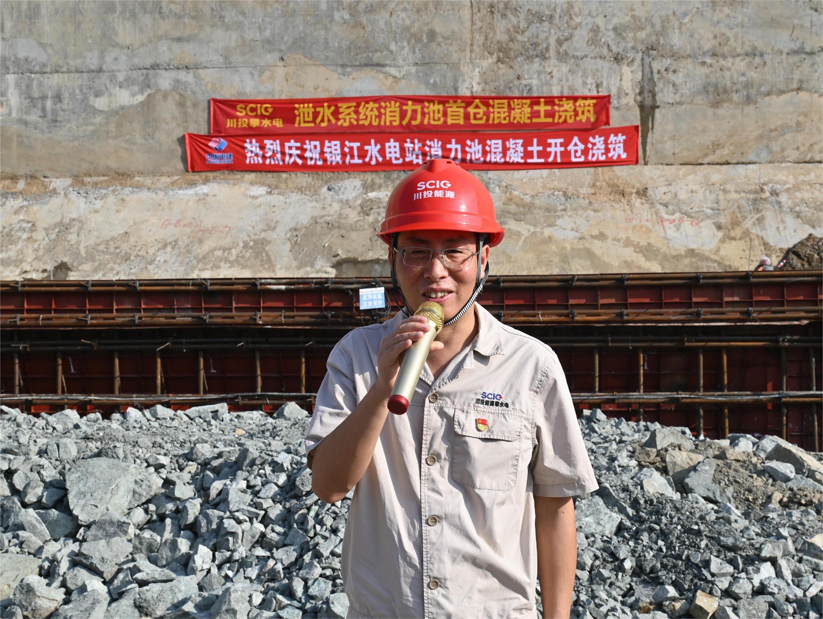 “現在我宣布泄水係統首倉混凝土澆築正式開始”,9月29日下午,在川投能源副總經理、公司黨總支書記、董事長徐孝剛的一聲指令下,銀江水電站泄水係統首倉混凝土正式開始澆築,標誌著主體工程施工由開挖逐步轉入混凝土澆築階段。
