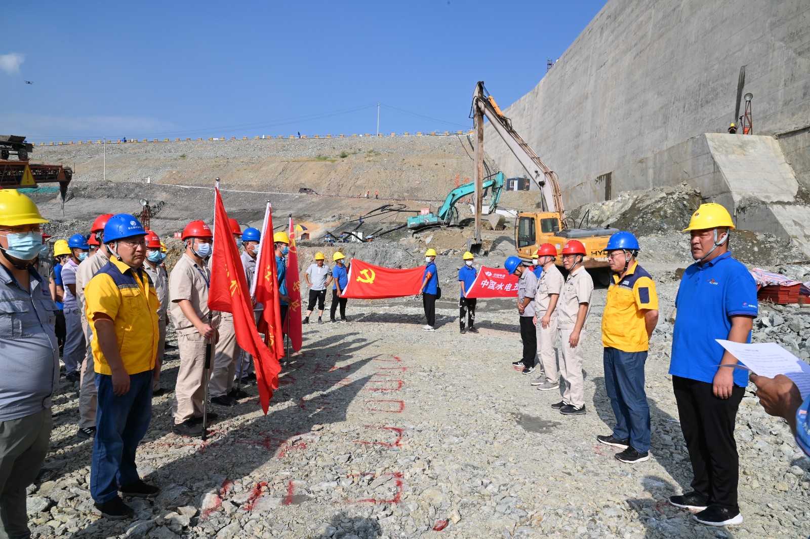 銀江水電站自2019年開工以來,公司組織各參建單位連續克服高溫酷暑、疫情常態化防控、地質條件差、征地拆遷推進難度大等困難,先後實現導流明渠過流、大江截流等重要節點目標,取得了提前一年大江截流的優秀成績,目前正全力向首台機組投產發電重要目標衝刺。按照省委省政府、市委市政府和川投集團、川投能源關於“決戰四季度、大幹一百天”的重要決策部署,公司認真謀劃,精心組織,9月29日順利開始了泄水係統首倉混凝土澆築,實現了銀江水電站工程建設第四季度開門紅。澆築過程中,攀水電公司機關第一、第二黨支部為一線作業人員送去了解暑良藥“綠豆湯”。