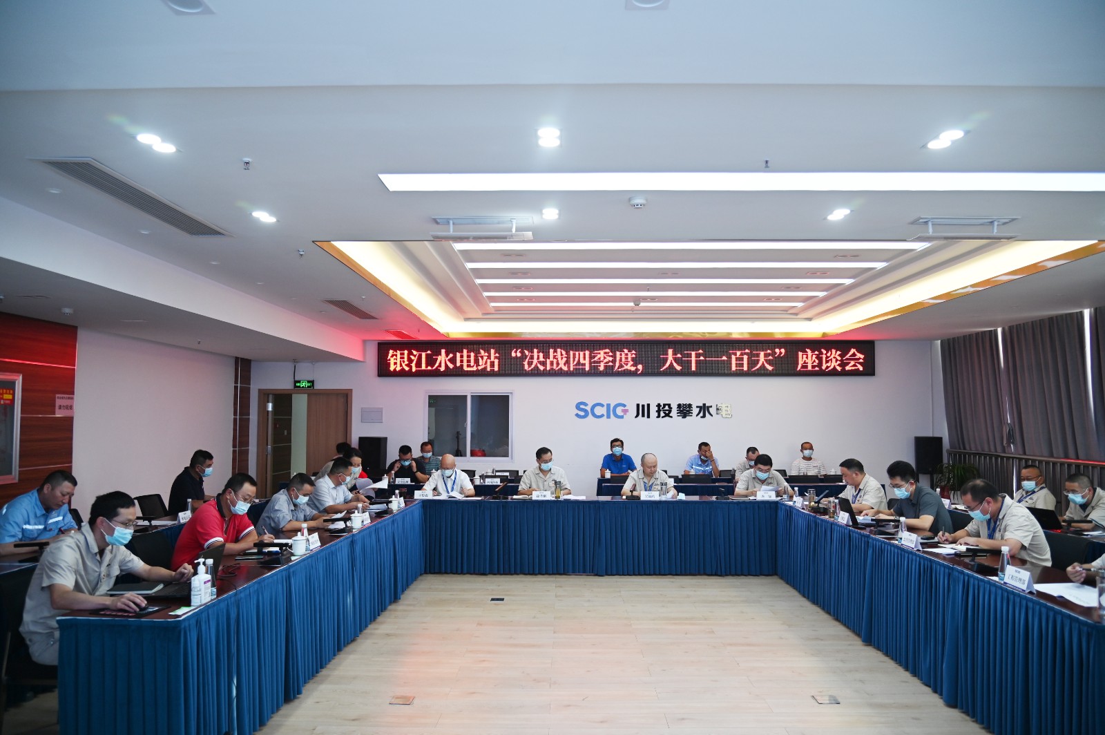 隨後,攀水電公司在公司2620會議室組織召開了銀江水電站“決戰四季度、大幹一百天,力爭提前完成基坑開挖,加快主體工程施工,獻禮二十大”座談會,會議由攀水電公司黨總支副書記、總經理吳巍嶼主持,公司領導班子成員、各部門負責人及各參建單位主要負責人共計30餘人參加了會議。