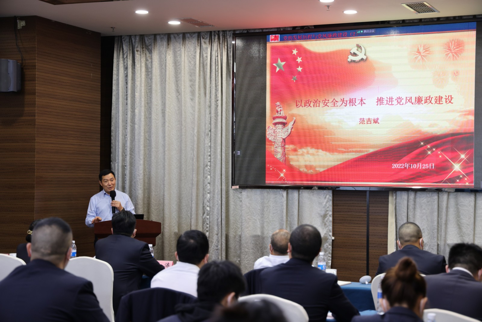 隨後,特邀四川省總工會幹校、成都市總工會幹校、成都非公企業學院、省直機關黨校研究生部客座教授範吉斌為大家講授《以政治安全為根本 推進黨風廉政建設》為主題的廉潔教育黨課。範教授從“總體國家安全觀與政治安全,政治安全必須加強黨風廉政建設,提高政治站位和政治修養”三個方麵,對加強作風建設引述經典論據,論述重要意義;對存在的主要問題進行客觀公正評價,深刻剖析原因;對如何律己正身、幹淨擔當製定方法路徑,提出目標要求;明確了作為新時代的一名國企黨員幹部暨關鍵崗位人員是什麼、應該做什麼、不能幹什麼。範教授以其深厚的理論知識、豐富的實踐經驗、鮮活的典型事例、切實的心得體會賦予了整堂黨課引人入勝、發人深省的魅力。