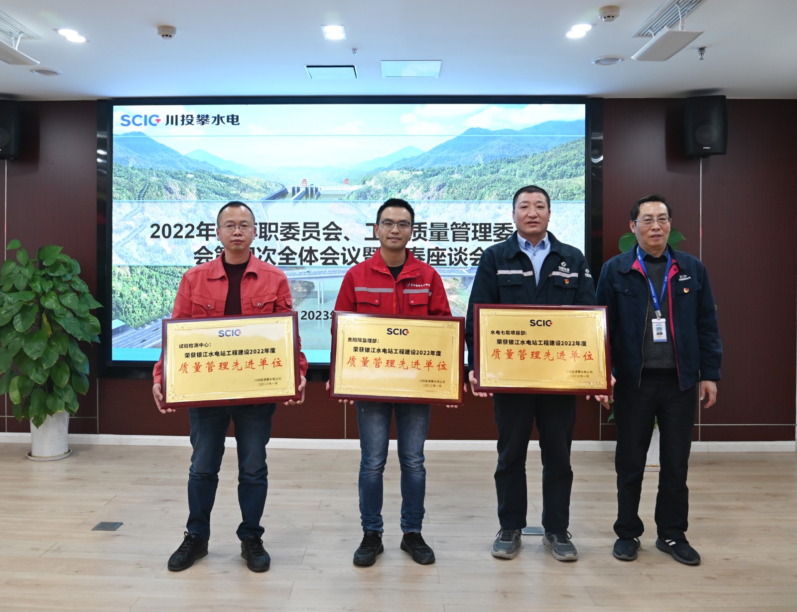 會上,公司黨總支副書記、董事會秘書、工會主席鄧勇宣讀了《關於表彰銀江水電站2022年度質量管理先進單位、先進集體和先進個人的通報》文件,徐孝剛向榮獲2022年度質量管理先進單位的試驗檢測中心、貴陽院監理部、水電七局項目部頒發了獎牌,公司總經理助理兼工程管理部經理嚴瑞平向先進集體代表頒發了獎牌。吳巍嶼組織參會人員向獲獎的單位、集(ji)體(ti)及(ji)個(ge)人(ren)表(biao)示(shi)了(le)祝(zhu)賀(he),要(yao)求(qiu)其(qi)在(zai)今(jin)後(hou)的(de)質(zhi)量(liang)管(guan)理(li)工(gong)作(zuo)中(zhong)發(fa)揮(hui)好(hao)先(xian)鋒(feng)模(mo)範(fan)帶(dai)頭(tou)作(zuo)用(yong),促(cu)進(jin)各(ge)參(can)建(jian)單(dan)位(wei)共(gong)同(tong)提(ti)高(gao)質(zhi)量(liang)管(guan)理(li)水(shui)平(ping),把(ba)銀(yin)江(jiang)水(shui)電(dian)站(zhan)建(jian)設(she)成(cheng)“精品工程、樣板工程、陽光工程”。