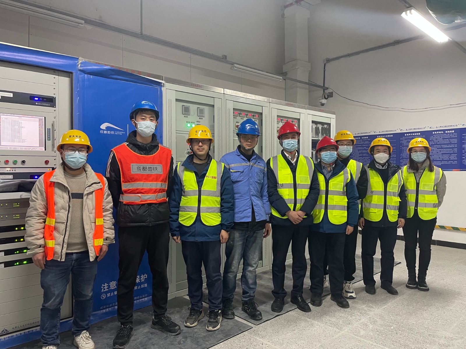 2月15日,交大光芒董事長梁濤率隊赴成都地鐵19號線二期工程調試現場調研並檢查安全環保工作。公司總經理助理、安環職委會常務副主任汪誌橋、安全環保部經理助理、事業一部副總經理及相關人員陪同調研。