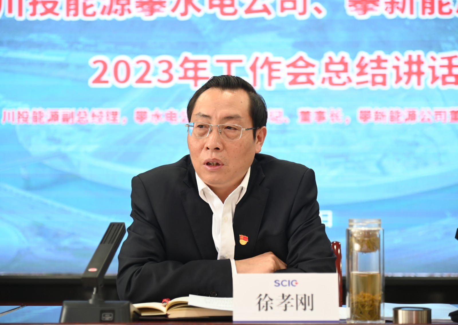 川投能源副總經理,攀水電公司黨總支書記、董事長,攀新能源公司董事長徐孝剛作了題為《踔厲奮發踏征程,鉚足幹勁拚發展》的主題講話。他表示:2022年nian是shi銀yin江jiang水shui電dian站zhan全quan麵mian進jin入ru主zhu體ti工gong程cheng施shi工gong的de關guan鍵jian之zhi年nian和he攀pan新xin能neng源yuan公gong司si新xin能neng源yuan快kuai速su發fa展zhan的de突tu破po之zhi年nian,攀pan水shui電dian公gong司si團tuan結jie帶dai領ling各ge參can建jian單dan位wei,連lian續xu克ke服fu新xin冠guan疫yi情qing多duo發fa、地質條件複雜、砂石骨料短缺等各種影響,精心謀劃施工組織,合理調配施工資源,組織開展“決戰四季度、大幹一百天,力爭提前完成二期基坑開挖,加快主體工程施工,獻禮二十大”等勞動競賽,確保了銀江水電站工程建設高效有序推進和公司各項年度目標任務順利完成。攀新能源公司成功收購了廣西農光公司51%控股權,實現了新能源光伏大型控股項目的重大“破冰”;完成了攀枝花郵處中心首個自主開發新能源項目的建設投運,實現了分布式光伏項目從“0”到“1”的關鍵性突破;有力推動了攀新能源公司快速高質量發展。