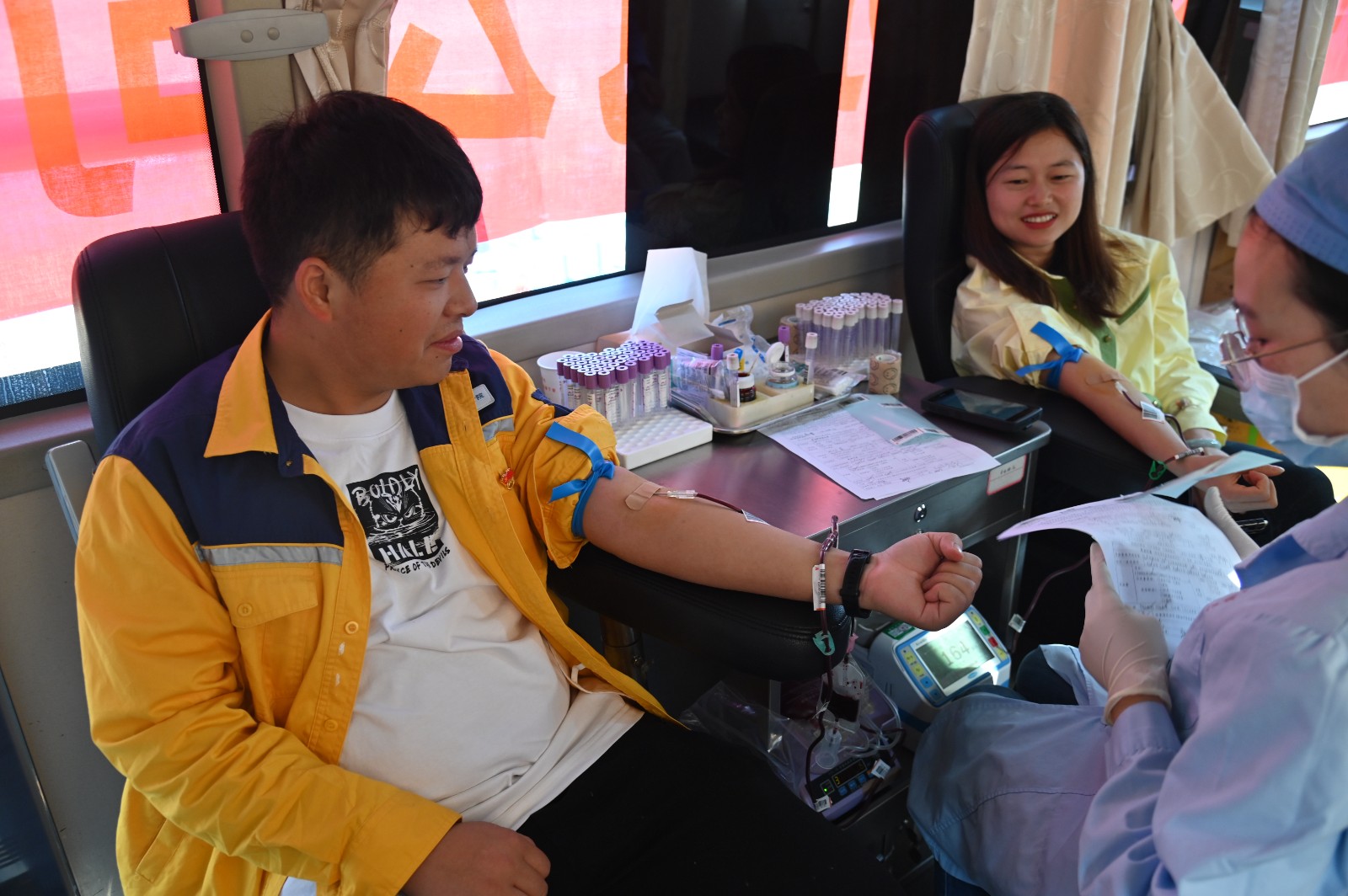 本次活動中既有初次獻血者也有多次獻血者,大家井然有序地填寫表格、測量血壓、抽血化驗,醫護人員耐心講解獻血常識和獻血後的注意事項,並發放獻血證,最終共計35人成功完成獻血,累計獻血量達10000毫升以上,活動現場處處洋溢著奉獻愛心後的喜悅與自豪。下一步攀水電公司黨總支將帶領全體黨員幹部、職(zhi)工(gong)永(yong)葆(bao)初(chu)心(xin)使(shi)命(ming),主(zhu)動(dong)承(cheng)擔(dan)社(she)會(hui)責(ze)任(ren),切(qie)實(shi)推(tui)動(dong)銀(yin)江(jiang)水(shui)電(dian)站(zhan)及(ji)各(ge)參(can)建(jian)單(dan)位(wei)的(de)精(jing)神(shen)文(wen)明(ming)建(jian)設(she),增(zeng)強(qiang)員(yuan)工(gong)社(she)會(hui)責(ze)任(ren)感(gan),以(yi)實(shi)際(ji)行(xing)動(dong)傳(chuan)承(cheng)弘(hong)揚(yang)雷(lei)鋒(feng)精(jing)神(shen)。