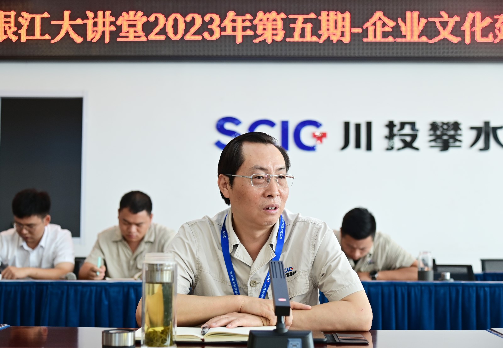 為wei推tui動dong學xue習xi貫guan徹che習xi近jin平ping新xin時shi代dai中zhong國guo特te色se社she會hui主zhu義yi思si想xiang主zhu題ti教jiao育yu走zou深shen走zou實shi,全quan麵mian落luo實shi黨dang的de二er十shi大da精jing神shen,堅jian定ding文wen化hua自zi信xin,不bu斷duan適shi應ying新xin時shi代dai國guo企qi文wen化hua建jian設she的de新xin形xing勢shi、新任務和新要求,充分發揮企業文化在推進企業高質量發展中的積極作用,7月30日,攀水電公司組織開展了2023年第五期銀江大講堂——企業文化建設專題講座暨研討會,會議邀請到了四川省市場監督管理學會理事、攀枝花學院經濟與管理學院副教授顧福珍授課。川投能源副總經理、公司黨總支書記、董事長、企業文化建設領導小組組長徐孝剛、公司在攀領導及全體員工共計40餘人參加會議。