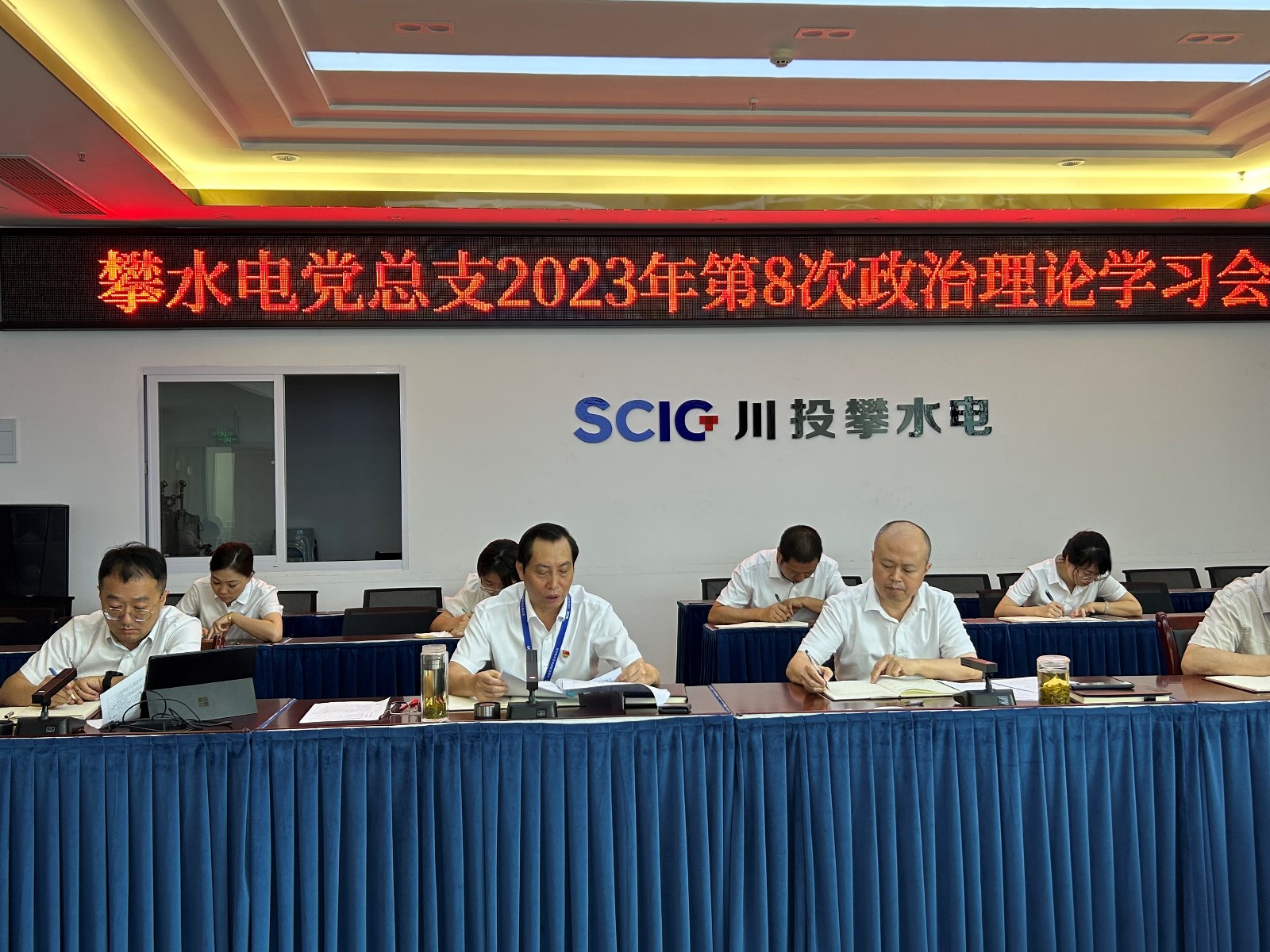 7月29日,公司黨總支在2620會議室召開了2023年第8次黨總支政治理論(擴大)學習會,會議由川投能源副總經理,攀水電公司黨總支書記、董事長徐孝剛主持,公司中心組成員、全體黨員、非黨幹部、入黨積極分子共30餘人參加學習。