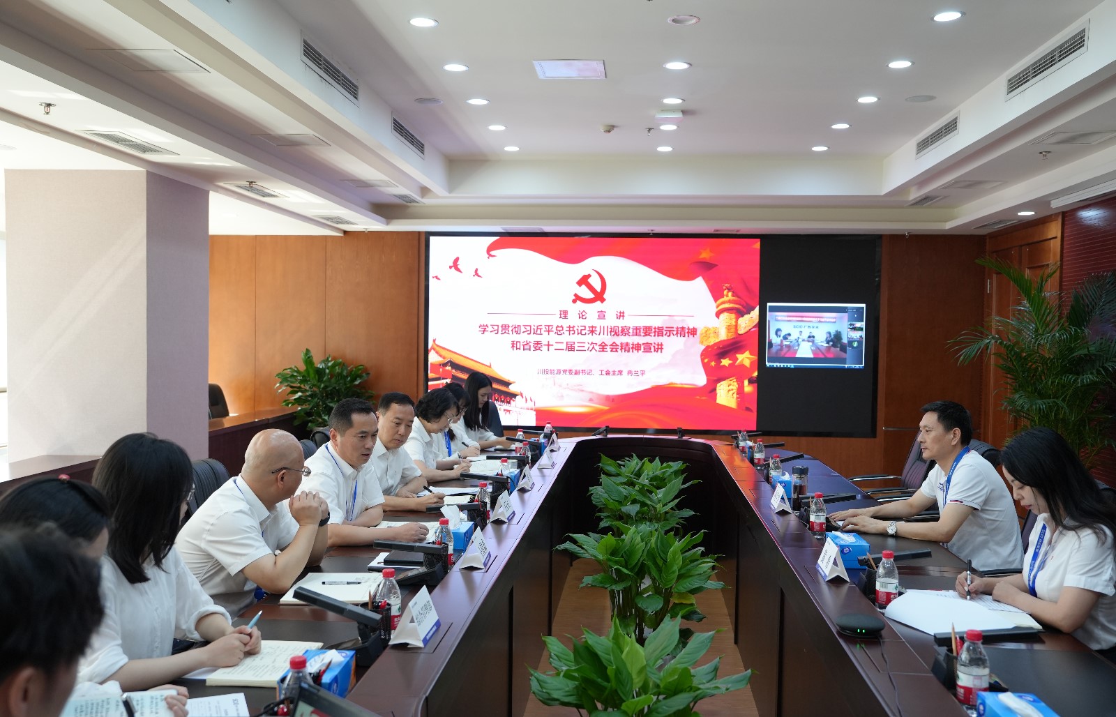 為(wei)深(shen)入(ru)貫(guan)徹(che)落(luo)實(shi)習(xi)近(jin)平(ping)總(zong)書(shu)記(ji)來(lai)川(chuan)視(shi)察(cha)重(zhong)要(yao)指(zhi)示(shi)精(jing)神(shen)和(he)省(sheng)委(wei)十(shi)二(er)屆(jie)三(san)次(ci)全(quan)會(hui)精(jing)神(shen),按(an)照(zhao)川(chuan)投(tou)集(ji)團(tuan)黨(dang)委(wei)統(tong)一(yi)部(bu)署(shu)和(he)川(chuan)投(tou)能(neng)源(yuan)黨(dang)委(wei)工(gong)作(zuo)安(an)排(pai),川(chuan)投(tou)能(neng)源(yuan)黨(dang)委(wei)副(fu)書(shu)記(ji)、工會主席冉蘭平於9月14日赴攀新能源公司作專題宣講。公司黨支部書記、董事長王行仁主持會議。