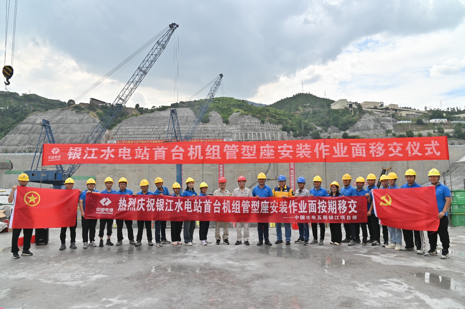 儀式首先由水電五局銀江項目部、guangdongyuantianxiangmubufenbiehuibaoleshoutaijizujiguanxingzuotujianwanchengqingkuangheanzhuangzhunbeigongzuoqingkuang,guiyangyuanjianlibujianyaohuibaoleshoutaijizuguanxingzuoanzhuangzuoyemianyijiaozhengtijianzhaqingkuang。shangwu10時20分,在銀江水電站參建各方的共同見證下,水電五局項目部、廣東源天項目部完成1#機組管形座安裝工作麵移交簽字,成功實現了提前1天完成首台機組管形座安裝工作麵移交節點目標,標誌著銀江水電站正式進入機組安裝新階段。