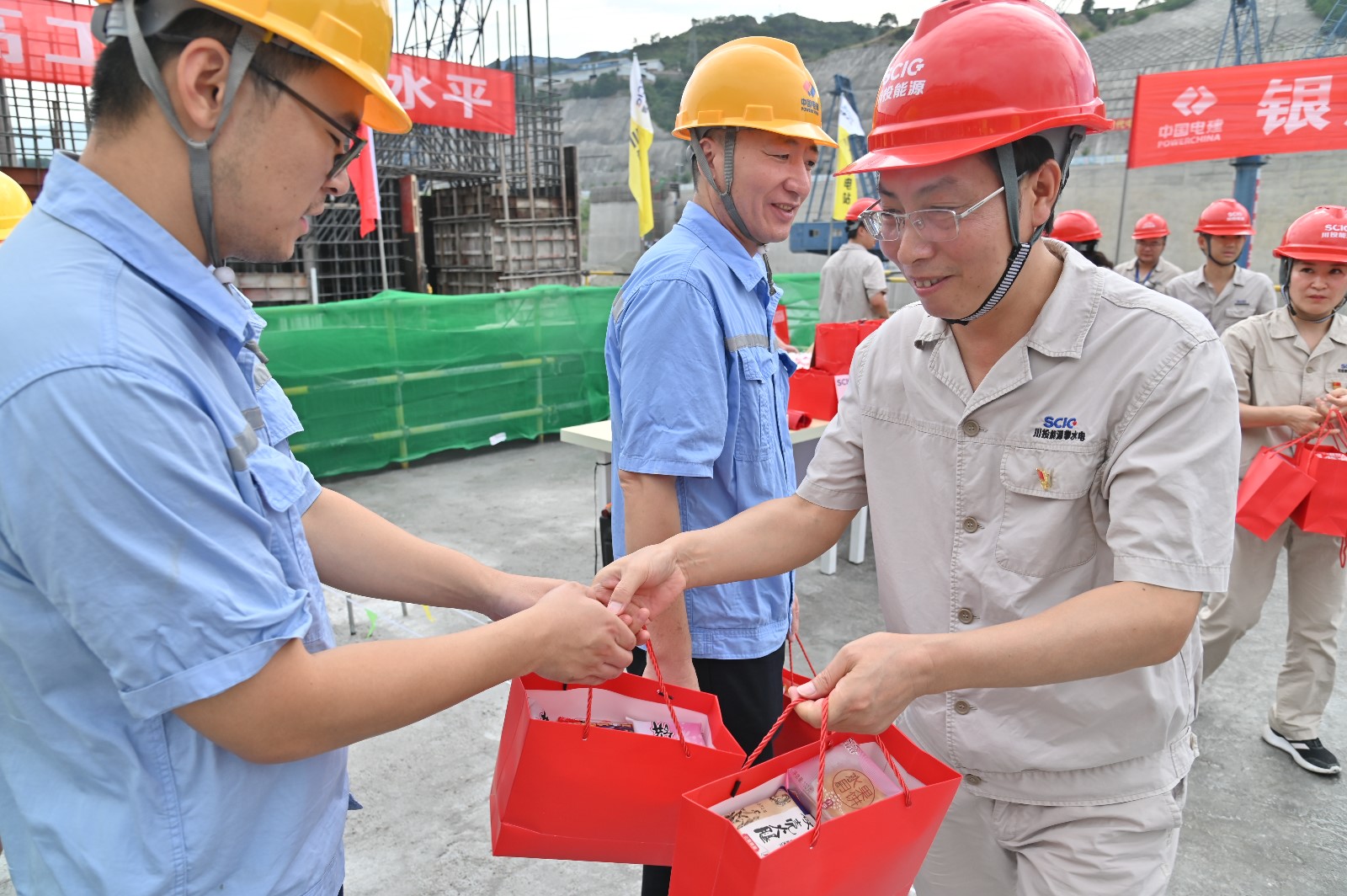 儀式最後,徐孝剛一行代表攀水電公司向中秋佳節仍堅守在施工一線的全體人員送上了中秋、國慶節日慰問。