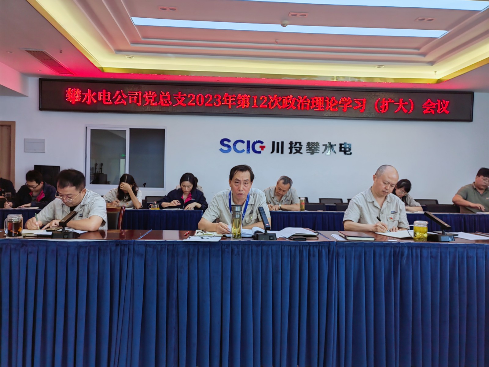 10月27日,公司黨總支在2620會議室召開了2023年第12次政治理論學習(擴大)會議,會議由川投能源副總經理,攀水電公司黨總支書記、董事長徐孝剛主持,黨總支政治理論學習會成員、全體中幹、支部書記、其他黨員、入黨積極分子共30餘人參加學習。