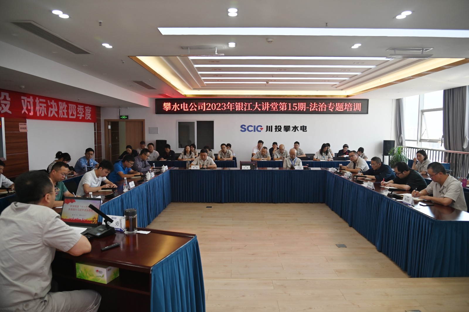 為深入學習宣貫黨的二十大精神,認真貫徹落實習近平法治思想,積極落實省國資委、川投集團、川投能源關於“送法進企業”活動要求,進一步提升企業依法治理和合規經營能力,切實增強廣大幹部職工法律意識和法治素養,2023年10月31日,公司精心組織開展了第15期銀江大講堂——法治專題培訓,公司在攀領導、員工及參建單位人員共計40餘人參加培訓。