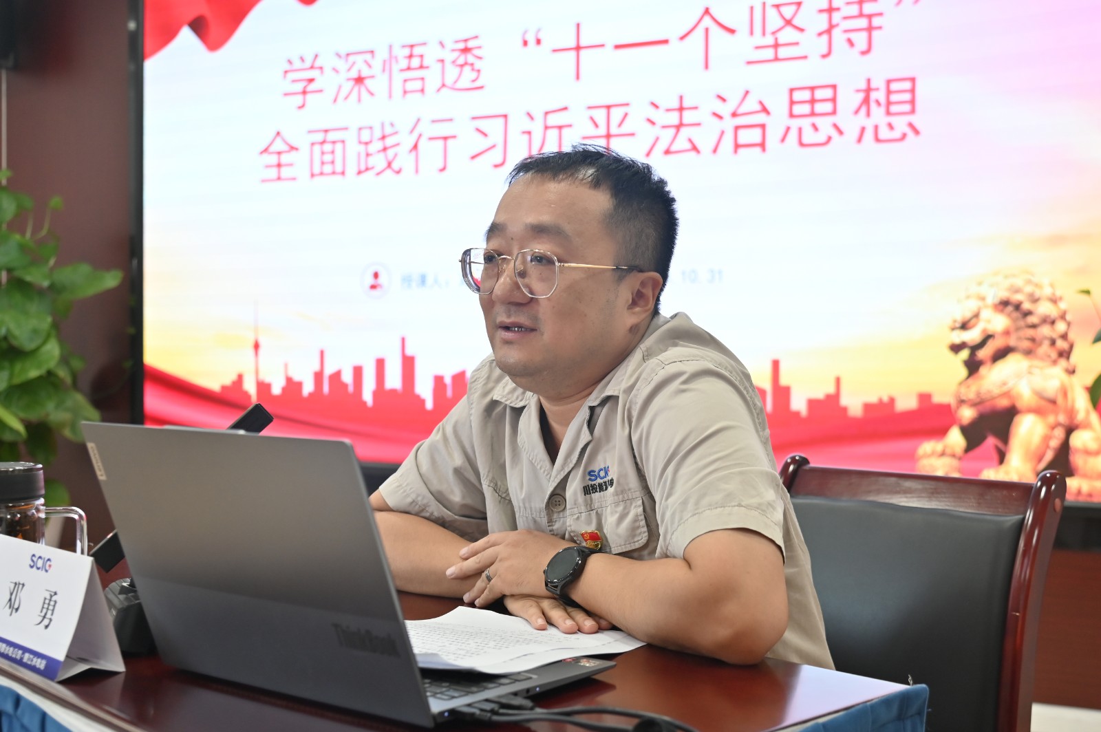 會上,公司黨總支副書記、董事會秘書、工會主席鄧勇以“學深悟透‘十一個堅持’,全麵踐行習近平法治思想”為題,從習近平法治思想的核心理念、總體部署、關鍵舉措、重要成果四個方麵做了係統闡述,詳細解讀了學深悟透“十一個堅持”的內在邏輯和豐富內涵,進一步深化了公司員工對習近平法治思想的理解和認識。