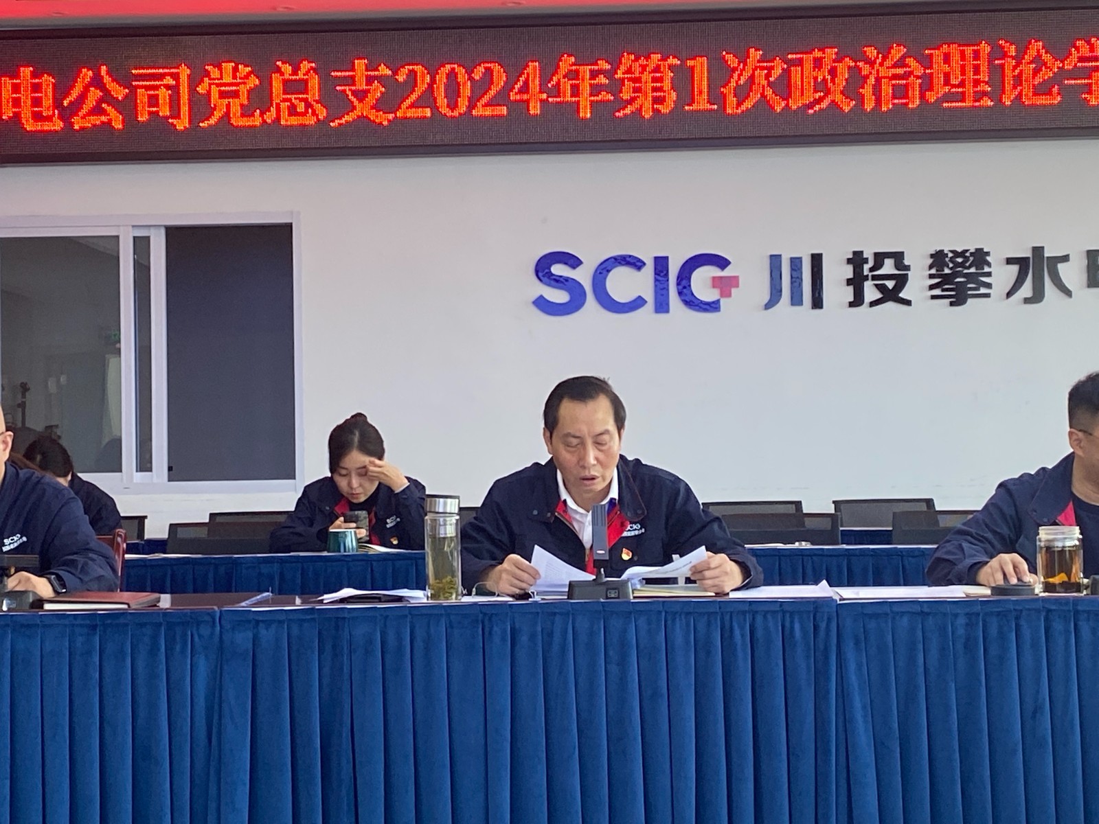 1月27日下午,攀水電黨總支在2620會議室召開了2024年第1次政治理論學習(擴大)會議,本次學習主要包括第一議題學習、上級文件精神、統戰工作、安全環保、廉政警示教育、分享式領學六個部分。會議由川投能源副總經理、攀水電公司黨總支書記、董事長徐孝剛主持,黨總支政治理論學習會成員、全體中幹、支部書記、其他黨員、統戰對象、入黨積極分子共30餘人參加。