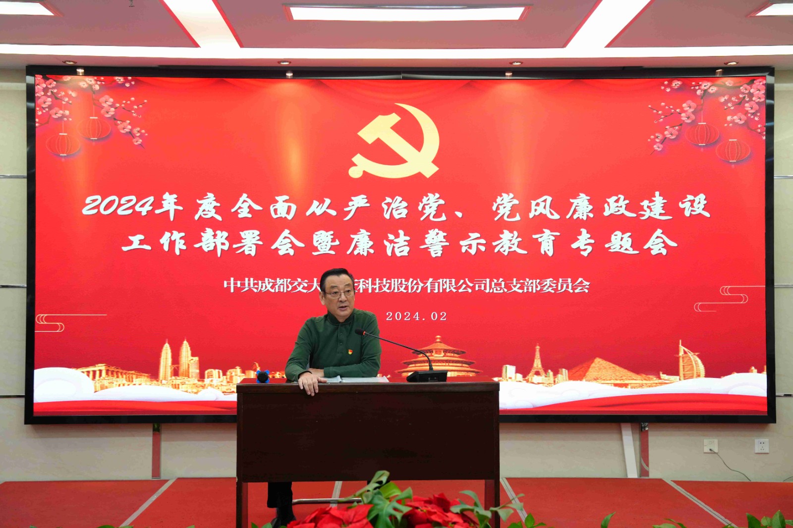 為深入推進全麵從嚴治黨,進一步落實公司黨風廉政建設責任製,2月27日交大光芒召開2024年度全麵從嚴治黨、黨風廉政建設工作部署會暨廉潔警示教育大會。公司領導班子成員、主管及以上管理人員、黨員參加會議。公司黨總支書記、總經理劉成輝主持會議並作廉潔警示談話。