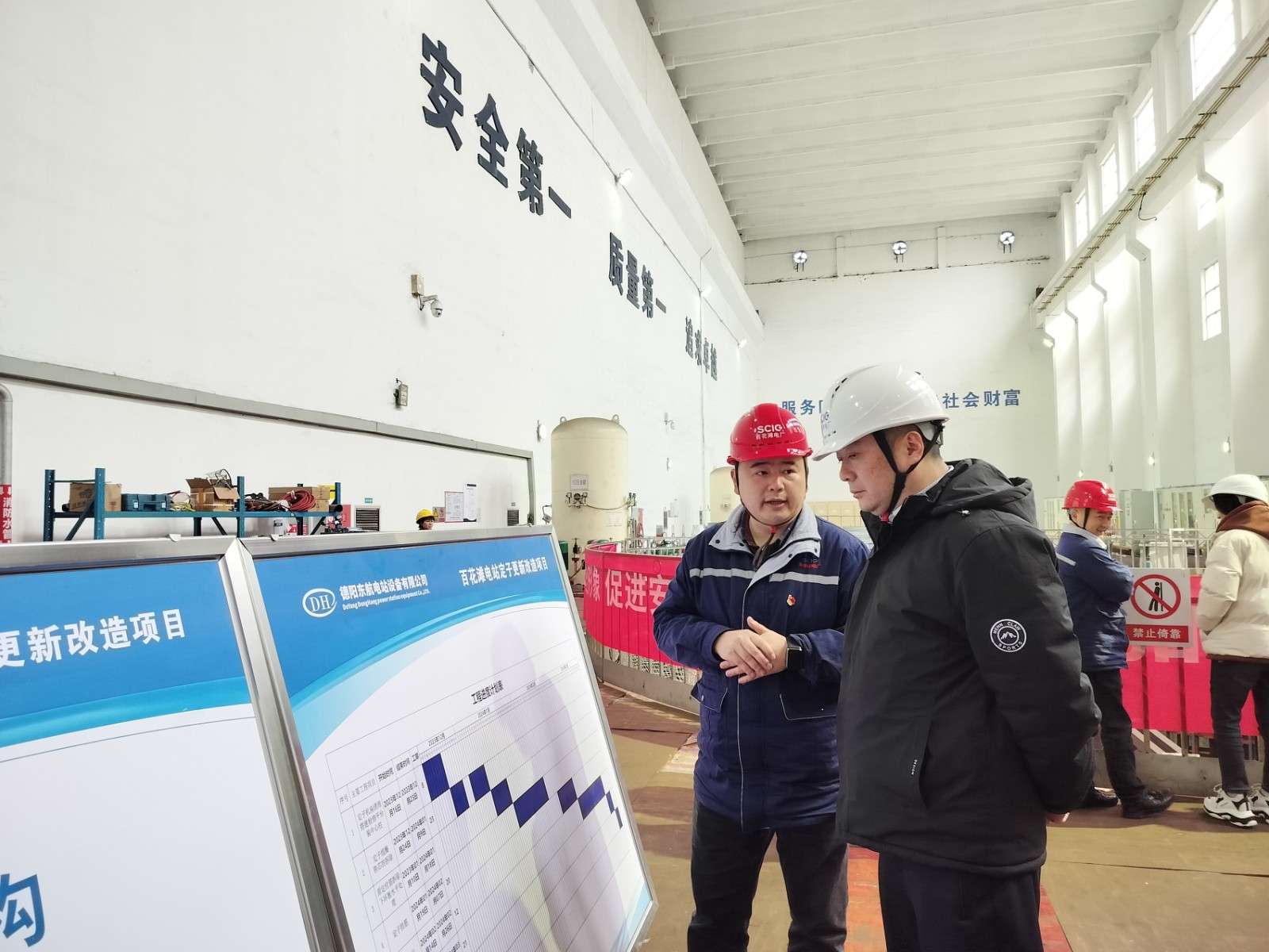 考核結束後,楊濤一行到百花灘電廠檢查機組A級自主檢修和定子更新改造安全工作。