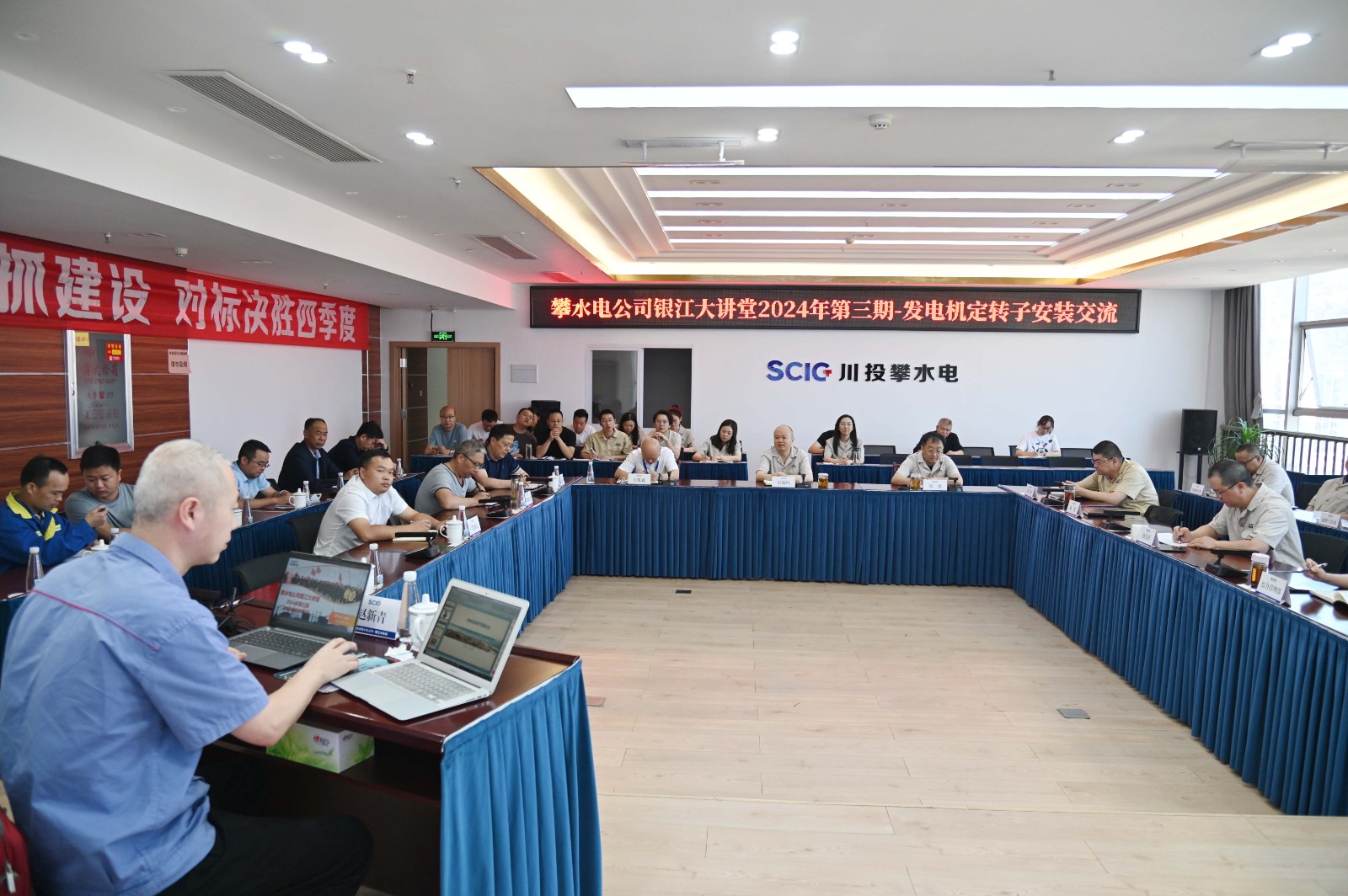 zaiyinjiangshuidianzhanzhuchangfangqiaojishunlianzhuangwancheng,jijiangjinxingshuilunfadianjizudingzhuanzizuzhuangzhiji,panshuidiangongsiyaoqinghaerbindianjichangyouxianzerengongsigaojigongchengshizhaoxinqing,zaiyinjiangdajiangtangshanggeigongsigebumenjigecanjiandanwei,zuoletiwei《發電機定轉子安裝》的技術交流課,公司領導、各部門及各參建單位相關人員共30餘人參加培訓。