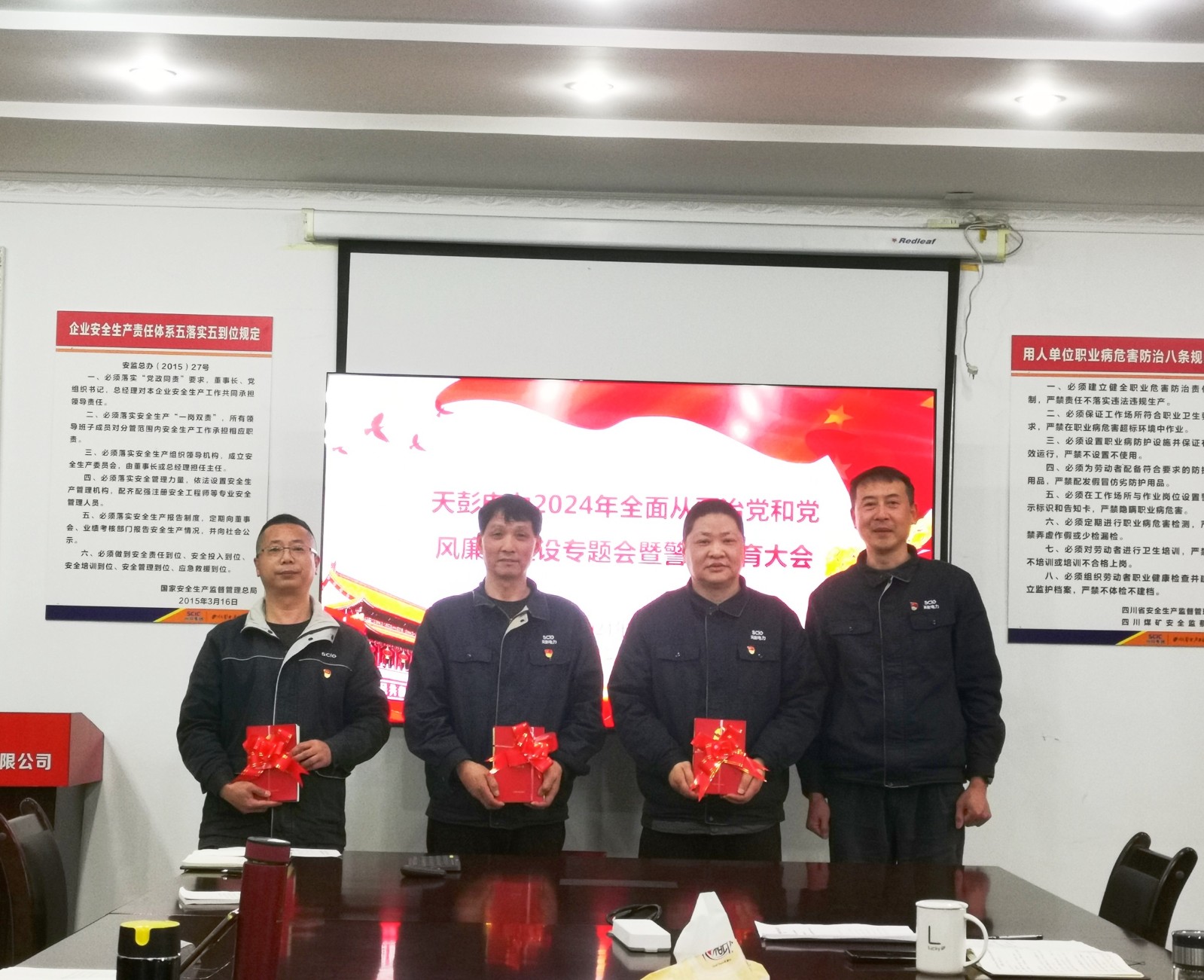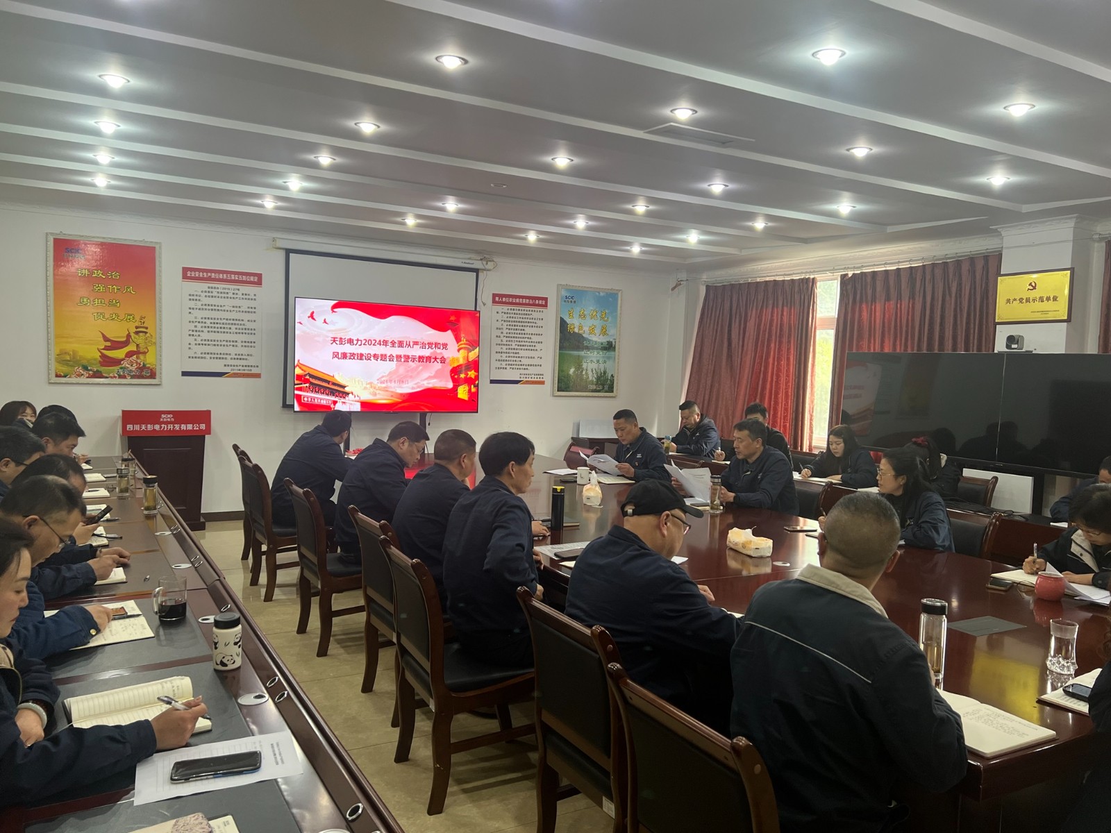 為深入學習領會習近平總書記關於黨的自我革命重要思想,認真貫徹落實二十屆中央紀委三次全會、省紀委十二屆三次全會精神,4月8日,天彭電力召開2024年全麵從嚴治黨和黨風廉政建設專題會暨警示教育大會,公司領導班子、中層幹部、黨員及關鍵崗位人員參加大會,會議由公司黨總支委員、紀檢小組長、工會主席汪曉力主持。