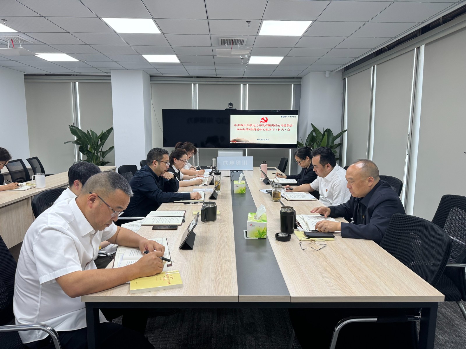 5月10日,川投電力黨委理論學習中心組召開2024年第5次學習(擴大)會議。公司黨委書記、董事長楊濤主持會議並結合工作實際提出工作要求。公司領導班子成員、黨群工作部、紀檢工作部負責人參加學習。