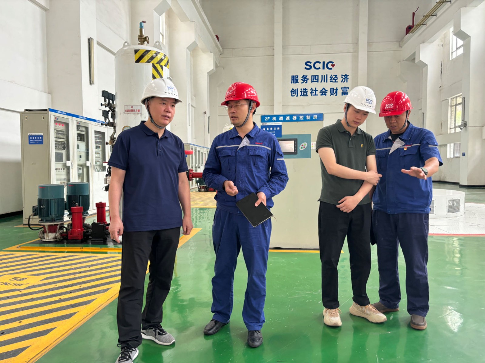 檢查組一行先到生產一線對主廠房設備設施、大壩水庫調度、生態流量下泄、應急物資儲備、中控室生產運行情況進行了重點查看,檢查中,腳基坪電廠廠長趙兵對應急物資儲備情況、防汛應急預案、汛期值班值守、地質災害風險辨識和防範措施等情況進行了彙報,陶世賢對腳基坪電廠在防汛減災各項工作落實情況給予了充分的肯定。
