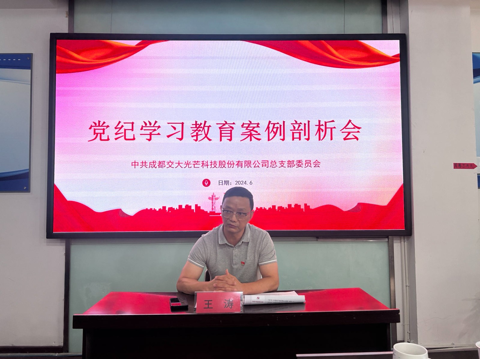 為認真貫徹黨中央和省委關於開展黨紀學習教育的部署要求,交大光芒黨總支於6月28日開展2024年黨紀學習教育專題警示教育。公司領導班子成員、中層副職以上管理人員及全體黨員參加本次大會,會議由公司黨總支書記、常務副總經理王濤主持。