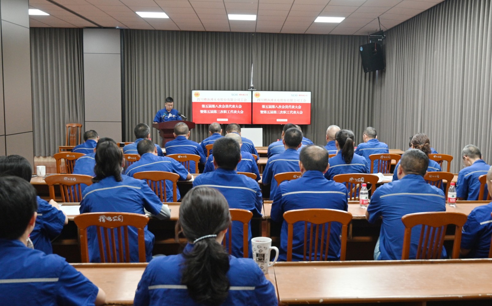 7月3日,槽漁灘公司召開工會五屆八次會員代表大會暨五屆三次職工代表大會,公司黨委書記、董事長何光富出席會議,黨委副書記、工會主席陳堯主持會議,黨委班子成員、工會會員代表、職工代表共計39人參加。